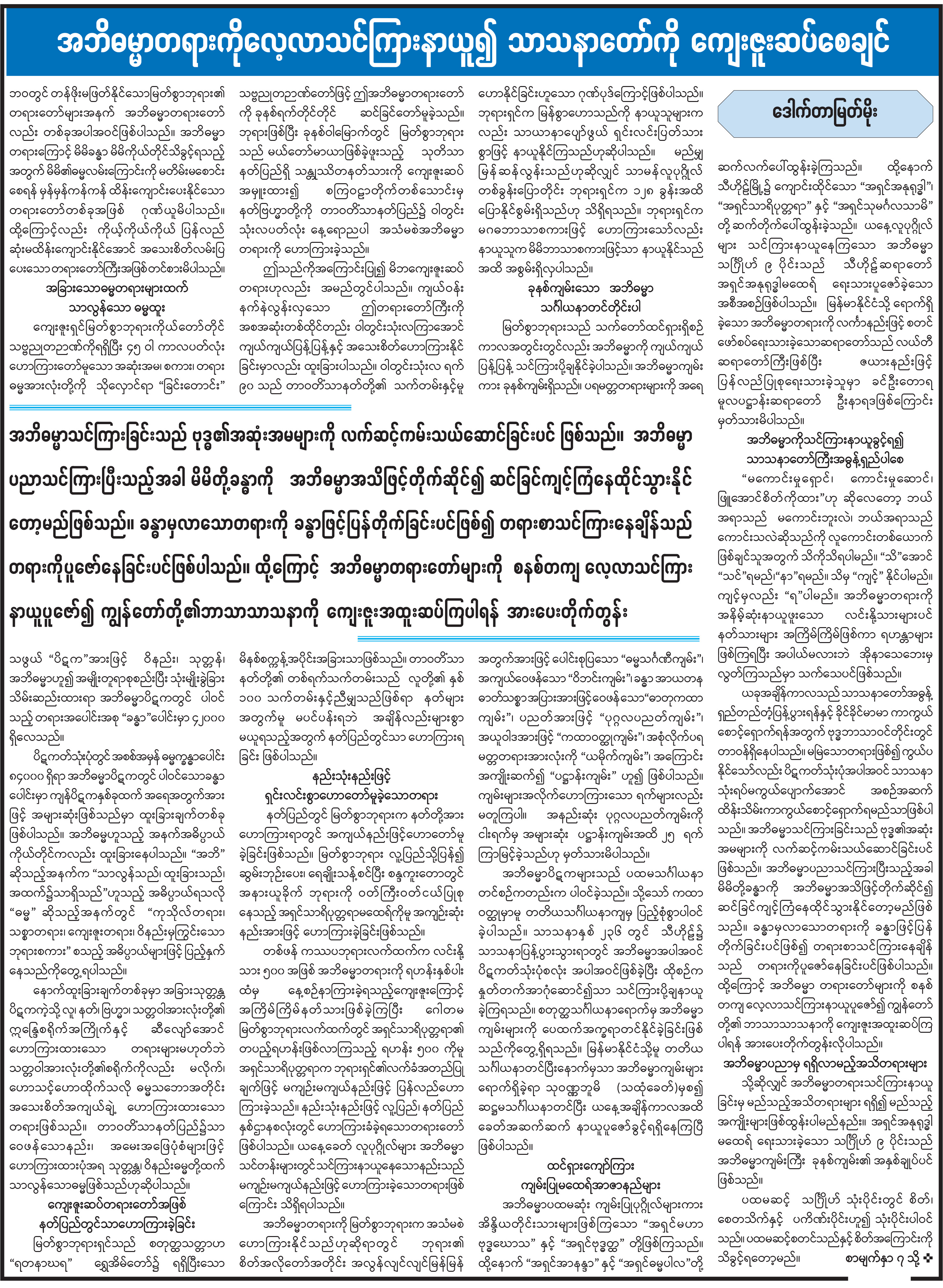 အဘိဓမ္မာတရားကိုလေ့လာသင်ကြားနာယူ၍ သာသနာတော်ကို ကျေးဇူးဆပ်စေချင်