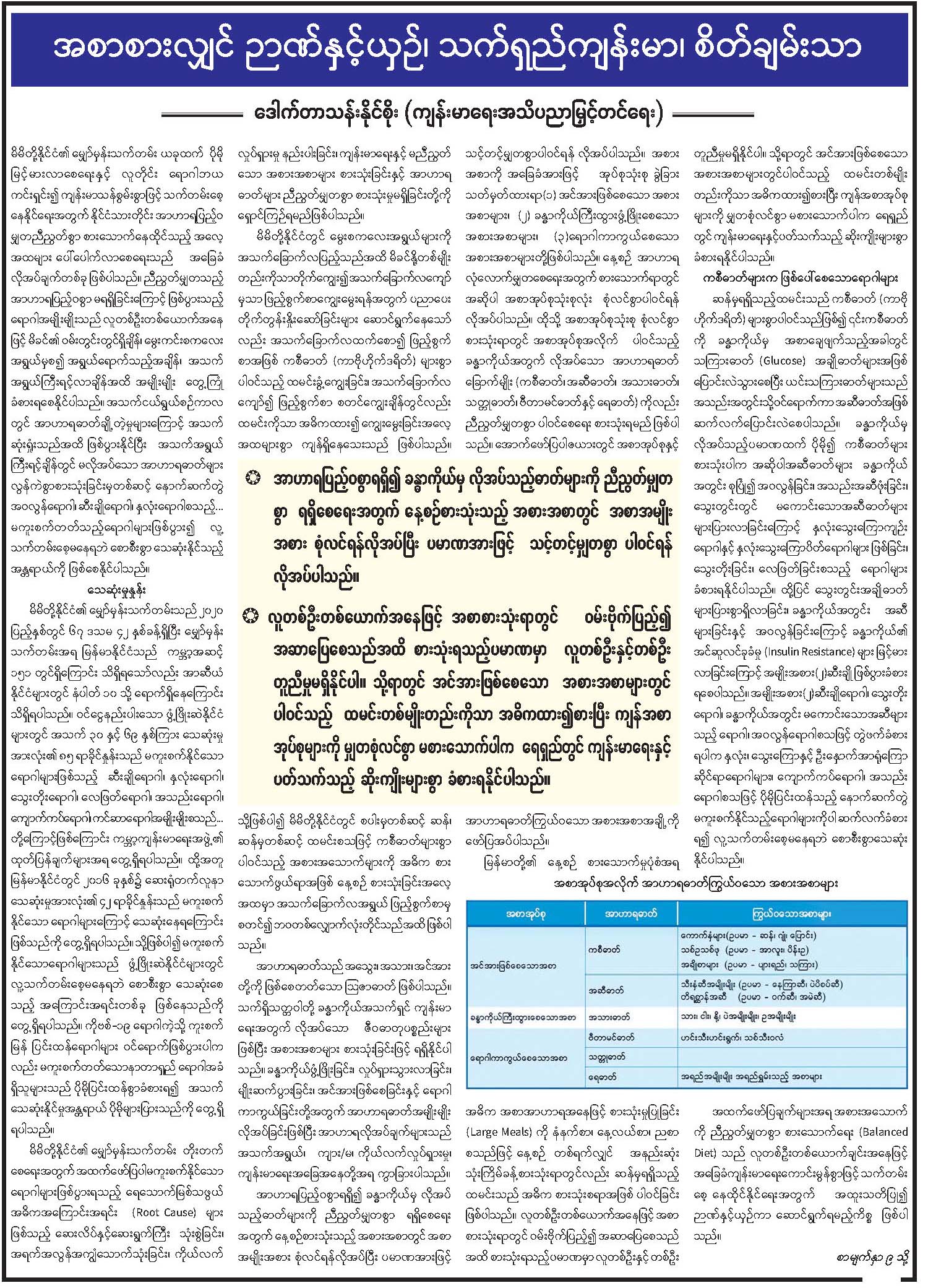 အစာစားလျှင် ဉာဏ်နှင့်ယှဉ်၊ သက်ရှည်ကျန်းမာ၊ စိတ်ချမ်းသာ