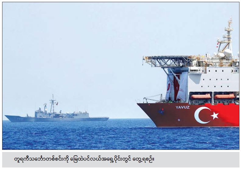 သဘာဝသယံဇာတတူးဖော်မှုနှင့်ပတ်သက်၍ မြေထဲပင်လယ်ဒေသအတွင်း တင်းမာမှုများ မြင့်တက်နေချိန်တွင် ဆိုက်ပရပ်စ်ရေပိုင်နက်ထဲသို့ ဝင်ရောက်လာသည့် အစ္စရေး သင်္ဘောတစ်စင်းကို တူရကီ ရေတပ်ဖွဲ့က ကြားဖြတ်ဟန့်တား မှုပြုလုပ်ခဲ့ကြောင်း သိရသည်။ ဘတ်ဂါလီယမ် အမည်ရှိ အစ္စရေးနိုင်ငံ၏ သုတေသနသင်္ဘောသည် ဆိုက်ပရပ်စ်ရေပိုင်နက်အတွင်း ဆိုက်ပရပ်စ် အာဏာပိုင်များနှင့်အတူ ပူးပေါင်းကာသုတေသနလုပ်ငန်း ဆောင်ရွက်နေခဲ့ကြောင်း အစ္စရေးအမျိုးသားအခြေခံ အဆောက်အအုံ၊ စွမ်းအင်နှင့် ရေအရင်းအမြစ်ဝန်ကြီးဌာန ဖော်ပြချက်ကို ကိုးကားလျက် အစ္စရေး သတင်းမီဒီယာက ဖော်ပြခဲ့ခြင်းဖြစ်သည်။