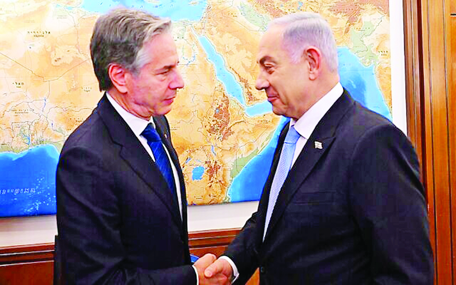 အစ္စရေးဝန်ကြီးချုပ် နေတန်ယာဟုနှင့် အမေရိကန် နိုင်ငံခြားရေးဝန်ကြီး အန်ထော်နီဘလင်ကင်တို့ အကြား ဆွေးနွေးပွဲကို ယနေ့၌ ဂျေရုဆလင်တွင် ကျင်းပခဲ့ကြောင်းသိရသည်။ ဆွေးနွေးပွဲအတွင်း အမေရိကန်ဘက်မှ အဆိုပြုလာသည့် ဓားစာခံများလွတ်မြောက်ရေးဆိုင်ရာ အစီအစဉ်ကို အစ္စရေးကလက်ခံခဲ့ကြောင်း နေတန်ယာဟုက ပြောကြားခဲ့သည်။