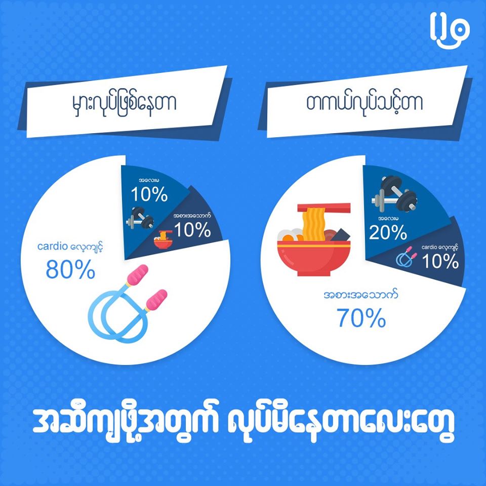 တကယ်တမ်း ဝိတ်ကျဖို့ဆိုရင် ကျန်းမာရေးနဲ့ညီညွတ်တဲ့ အစားအစာတွေကို အာဟာရပြည့်ဝအောင် စားပြီး လေ့ကျင့်ခန်းကို လိုအပ်သလောက်ပဲ လုပ်သင့်ပါတယ်။