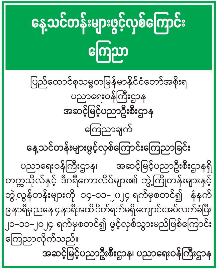 အဆင့်မြင့်ပညာဦးစီးဌာနရှိ တက္ကသိုလ်နှင့် ဒီဂရီကောလိပ်များ၏ ဘွဲ့ကြိုတန်းများနှင့် ဘွဲ့လွန်တန်းများကို ၂၁-၁၁-၂၀၂၄ ရက်မှစတင်၍ ဖွင့်လှစ်သွားမည်
