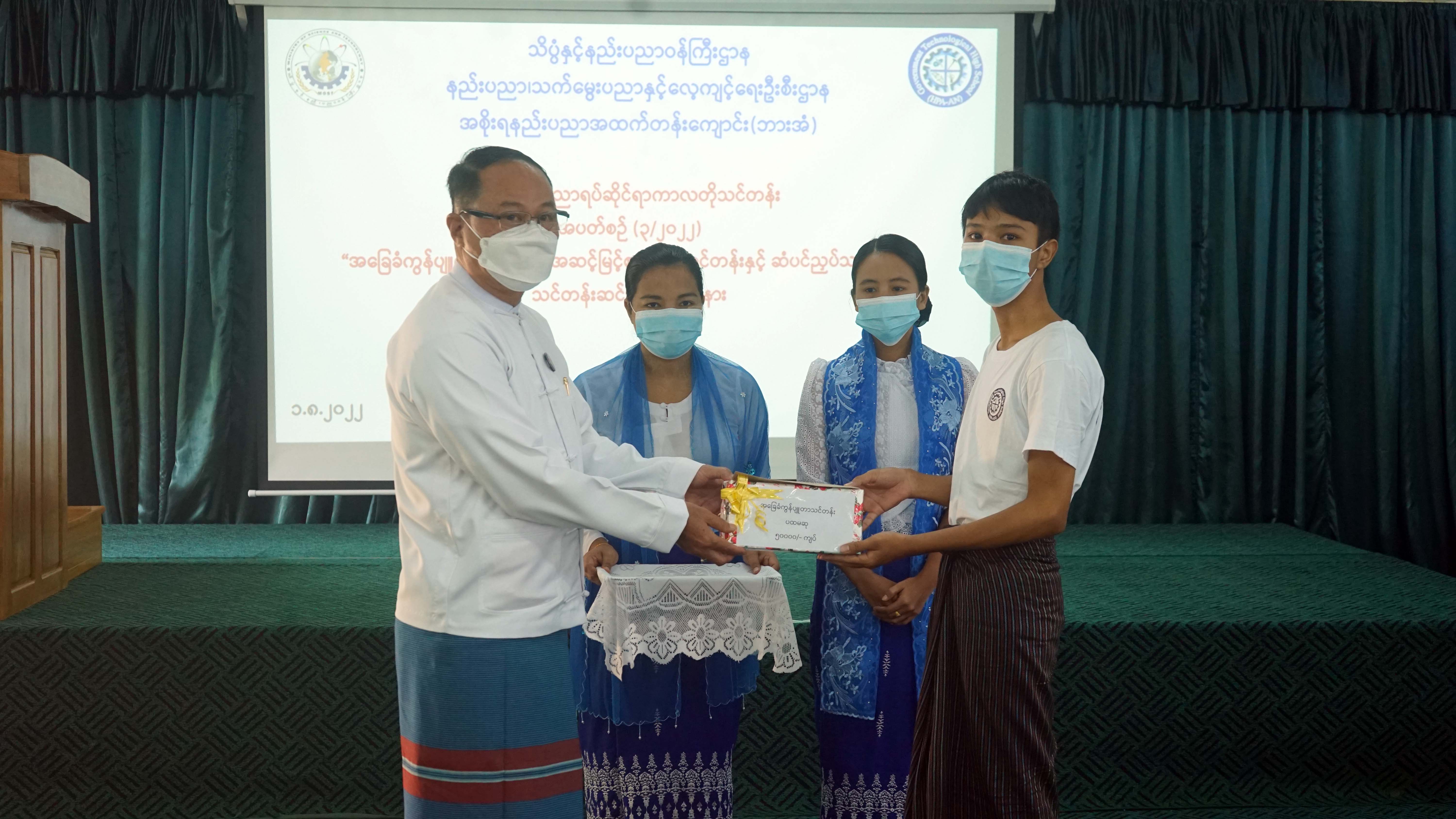 ထို့နောက် ကရင်ပြည်နယ်ဝန်ကြီးချုပ်၊ ပြည်နယ်တရားလွှတ်တော်တရားသူကြီးချုပ်ဒေါ်ခင်ဆွေထွန်း၊ လုံခြုံရေးနှင့်နယ်စပ်ရေးရာဝန်ကြီးဗိုလ်မှူးကြီးမျိုးမင်းနောင်တို့ အခြေခံကွန်ပျူတာသင်တန်း၊ အဆင့်မြင့်စက်ချုပ် သင်တန်းနှင့် ဆံပင်ညှပ်သင်တန်းတို့တွင် ထူးချွန်ဆုရရှိသူများအား ဂုဏ်ပြုဆုများပေးအပ်ချီးမြှင့်ပြီး ပြည်နယ်အစိုးရ အဖွဲ့အတွင်းရေးမှူးဦးကျော်စိုးက သင်တန်းဆင်းအောင်လက်မှတ်များပေးအပ်ချီးမြှင့်ကာ ပြည်နယ်သယံဇာတရေးရာ ဝန်ကြီးဦးဇော်ဝင်းက သင်တန်းနည်းပြဆရာ၊ဆရာမများအား ဂုဏ်ပြုမှတ်တမ်းလွှာများပေးအပ်သည်။