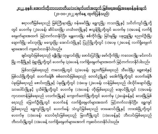 မိုးလေဝသနှင့်ဇလဗေဒညွှန်ကြားမှုဦးစီးဌာနမှ ၂၀၂၂ခုနှစ်၊ အောက်တိုဘာလ တတိယ(၁၀) ရက်ပတ်အတွက် မြစ်ရေအခြေအနေ ခန့်မှန်းချက်များကို (၂၁.၁၀.၂၀၂၂) ရက်နေ့တွင် အောက်ပါအတိုင်း ထုတ်ပြန်ထားပါတယ်။