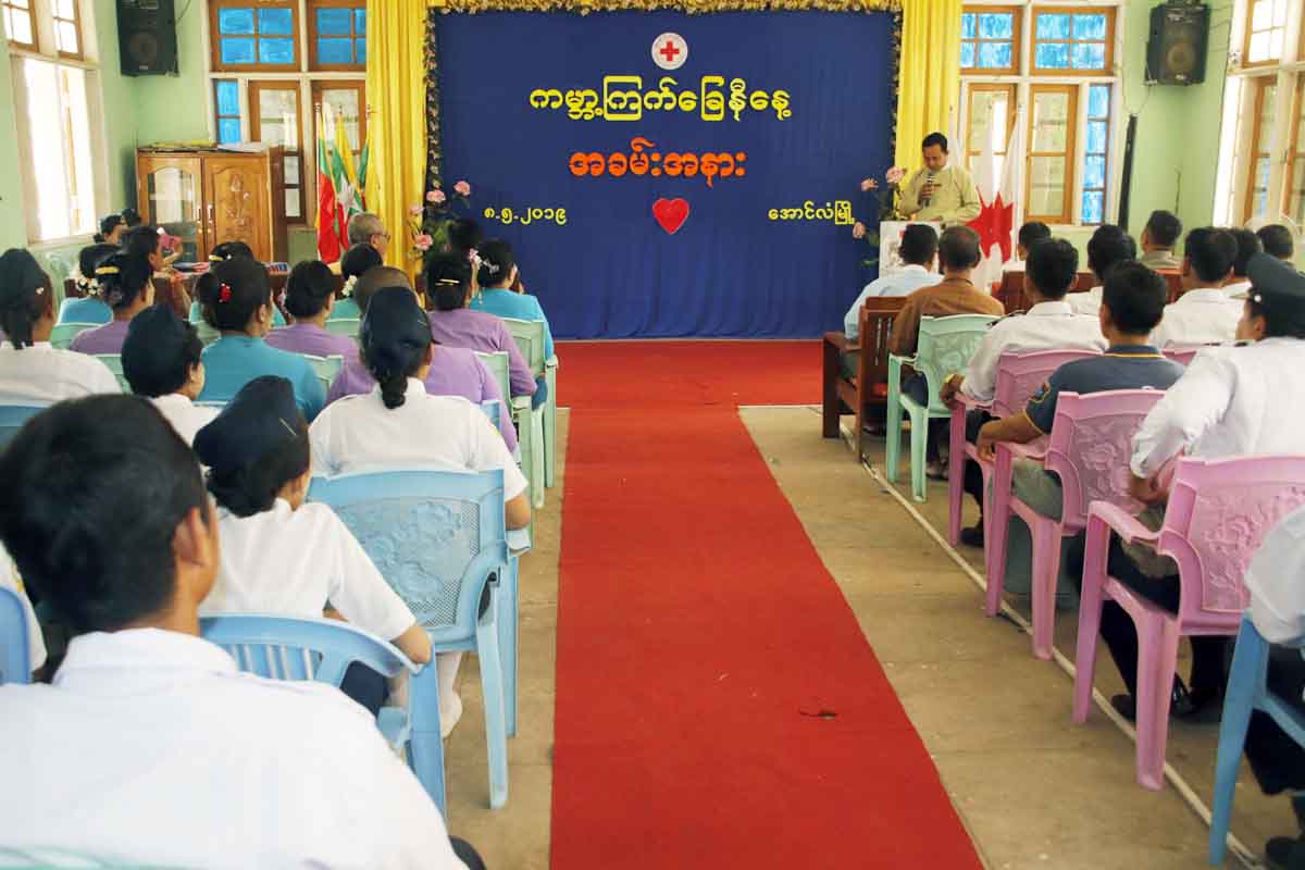 အခမ်းအနားတွင် မြန်မာနိုင်ငံ ကြက်ခြေနီအသင်းဥက္ကဋ္ဌ ပါမောက္ခ ဒေါက်တာဒေါ်မြသူမှ ပေးပို့သော ကမ္ဘာ့ကြက်ခြေနီနေ့ သဝဏ်လွှာကို ဒု-မြို့နယ်အုပ်ချုပ်ရေးမှူး ဦးအောင်ကိုကိုက ဖတ်ကြားပြီး ပြည်သူ့ကျန်းမာရေးဦးစီးဌာန မြို့နယ်ဦးစီးမှူး ဒေါက်တာမျိုးလွင်က ကြက်ခြေနီအသင်း စတင်ပေါ်ပေါက်လာပုံနှင့် ကြက်ခြေနီ၏ လုပ်ငန်းတာဝန်များအကြောင်းကို ရှင်းလင်းပြောကြား၍   မြို့နယ်ကြက်ခြေနီတပ်ဖွဲ့မှူး  ဦးကျော်နိုင်မှ မြို့နယ်ကြက်ခြေနီအသင်း၏ ရှေ့လုပ်ငန်းစဉ်များကို ရှင်းလင်းဆွေးနွေးခဲ့သည်။