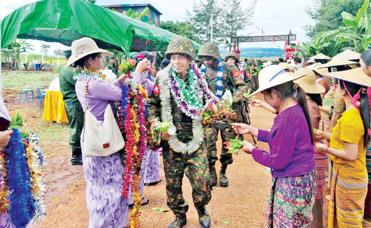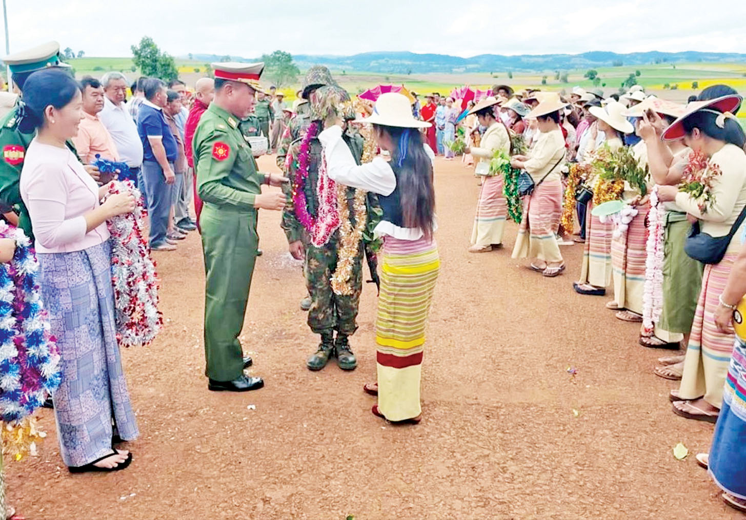ပြည်သူများအား နှိပ်စက်ညှဉ်းပန်း၍ ဒေသဖွံ့ဖြိုးတိုးတက်မှုကို ချွတ်ခြုံကျစေသည့် အကြမ်းဖက်လုပ်ရပ်များကို လုပ်ဆောင်ခဲ့သော တောင်ခမ်းမြို့၊ နောင်ချိုမြို့၊ ကျောက်မဲမြို့၊ သီပေါမြို့နှင့် အဆိုပါ ဒေသတစ်ဝိုက်တို့ရှိ လက်နက်ကိုင်အကြမ်းဖက်အဖွဲ့များနှင့် PDF အမည်ခံ အကြမ်းဖက်အဖွဲ့များအား ရွပ်ရွပ်ချွံချွံတိုက်ပွဲဝင်၍ အဆိုပါမြို့များကို ဒေသခံပြည်သူများ၏ လက်ဝယ်သို့ ပြန်လည်အပ်နှင်းနိုင်ခဲ့သည့် အောင်ပွဲရ ရှေ့တန်းပြန်တပ်မတော်သားများအား နိုဝင်ဘာ ၅ ရက် မွန်းလွဲပိုင်းတွင် အရှေ့မြောက်တိုင်းစစ်ဌာနချုပ်တိုင်းမှူး ဗိုလ်မှူးချုပ် အေးမင်းဦးနှင့် အဖွဲ့ဝင်များ၊ အရာရှိ၊ စစ်သည်၊ မိသားစုဝင်များ၊ ဌာနဆိုင်ရာတာဝန်ရှိသူများနှင့် ဒေသခံတိုင်းရင်းသားပြည်သူများက သီပေါမြို့နယ် မန်လီကျေးရွာရှိ နယ်မြေခံတပ်၌ ကြိုဆိုဂုဏ်ပြုကြသည်။