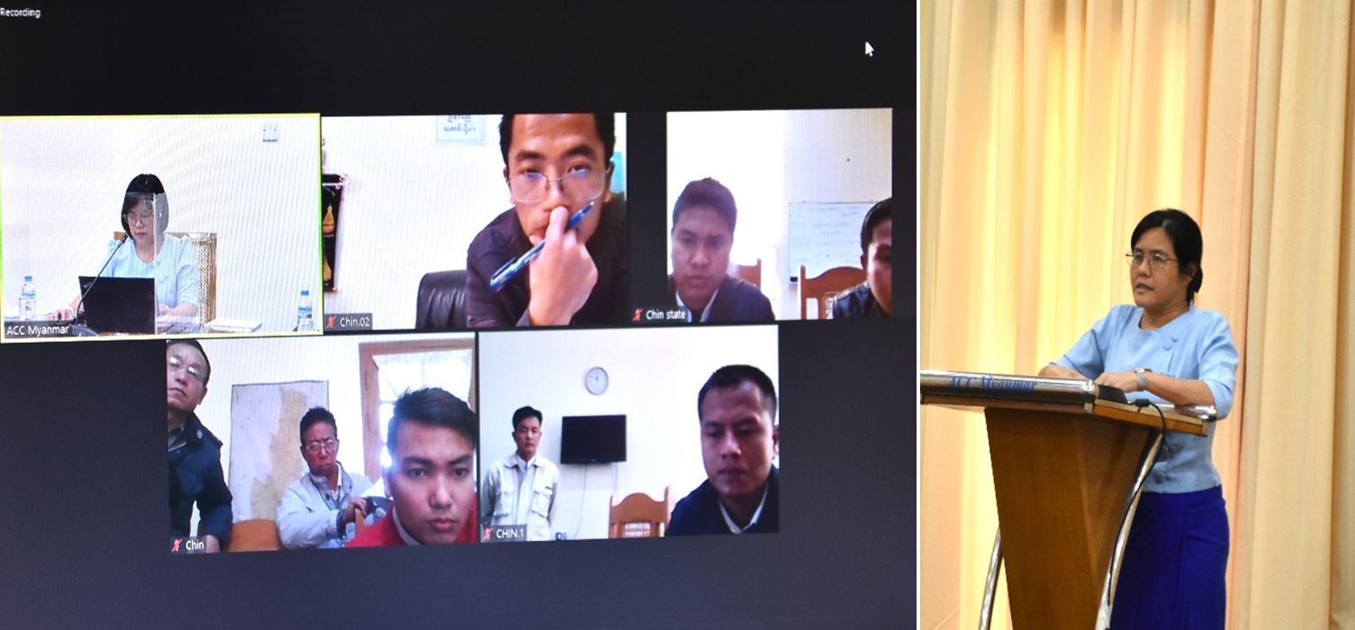 အဂတိလိုက်စားမှု တိုက်ဖျက်ရေးကော်မရှင်နှင့် ချင်းပြည်နယ်အစိုးရအဖွဲ့တို့ ပူးပေါင်း၍ ယနေ့ နံနက် ၉ နာရီခွဲတွင် ကော်မရှင်ရုံး၊ အစည်းအဝေးခန်းမ၌ ချင်းပြည်နယ်အစိုးရအဖွဲ့တွင် ဖွဲ့စည်းထားရှိသည့် အဂတိလိုက်စားမှု တားဆီးကာကွယ်ရေးအဖွဲ့ (Corruption Prevention Unit- CPU) ကို Online စနစ်ဖြင့် အဂတိလိုက်စားမှု တားဆီးကာကွယ်ရေးဆိုင်ရာ နည်းပညာသင်တန်းပို့ချခြင်းများ ဆောင်ရွက်သည်။