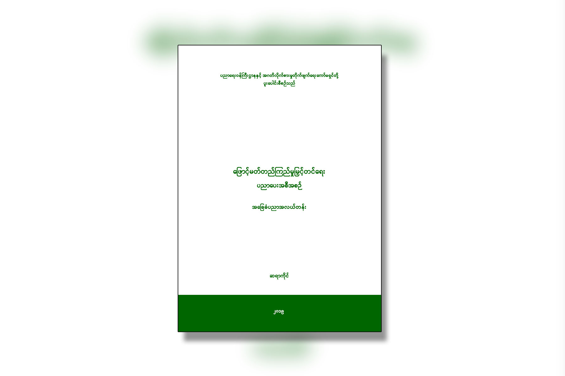အဂတိလိုက်စားမှုတိုက်ဖျက်ရေးကော်မရှင်သည် “ဖြောင့်မတ်တည်ကြည်မှု မြှင့်တင်ရေး ပညာပေးအစီအစဉ်” (အခြေခံပညာ အလယ်တန်းအဆင့်) ဆရာကိုင်စာအုပ် အုပ်ရေ ၄၀ဝ၀ဝ အား ပညာရေးဝန်ကြီးဌာနသို့ ဇူလိုင် ၂၉ ရက်တွင် လွှဲပြောင်းပေးအပ်ခဲ့ပြီး အဆိုပါစာအုပ်အား အောက်ပါ Link တွင် အပြည့်အစုံ ဖတ်ရှုနိုင်ပါသည် -