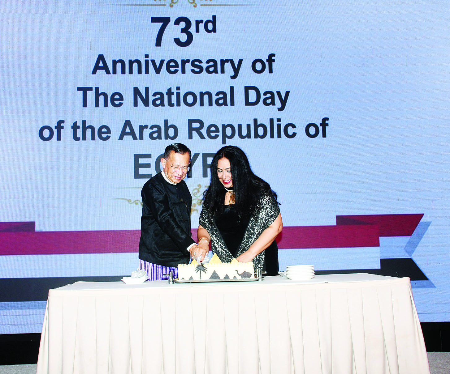 ယင်းနောက် ပြည်ထောင်စုဝန်ကြီး ဒေါက်တာကံဇော်နှင့် သံအမတ်ကြီးတို့သည် အီဂျစ်အာရပ်သမ္မတနိုင်ငံ၏ (၇၃) ကြိမ်မြောက် အမျိုးသားနေ့အထိမ်းအမှတ်ကိတ်ကို လှီးဖြတ်ကြသည်။