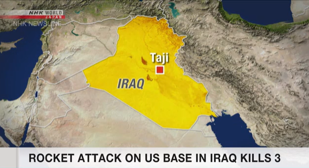 အီရတ်နိုင်ငံရှိ အမေရိကန်စစ်အခြေစိုက်စခန်းတစ်ခုတွင် ဒုံးကျည်ဖြင့် တိုက်ခိုက်မှုဖြစ်ပွားခဲ့သဖြင့် အမေရိကန်နိုင်ငံသားနှစ်ဦးနှင့် ဗြိတိန်ဝန်ထမ်းတစ်ဦးတို့ သေဆုံးခဲ့သည်ဟု အမေရိကန်မီဒီယာများက ဆိုသည်။