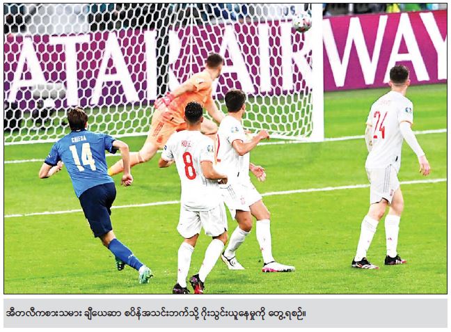 ယူရို ၂၀၂၀ ချန်ပီယံရှစ်ပြိုင်ပွဲဆီမီးဖိုင်နယ်ပွဲစဉ်အဖြစ် အီတလီ အသင်းနှင့် စပိန်အသင်းတို့ပွဲစဉ်ကို ဇူလိုင် ၇ ရက်နံနက်ပိုင်းက ယှဉ်ပြိုင်ကစားခဲ့ရာ သာမန်ပွဲချိန်အတွင်း တစ်ဖက်တစ်ဂိုးစီ သရေကျနေသော ကြောင့် ပယ်နယ်တီအဆုံးအဖြတ် ခံယူခဲ့ရသည်။ ပယ်နယ်တီအဆုံးအဖြတ်တွင် အီတလီအသင်းက လေးဂိုး-နှစ်ဂိုးဖြင့် အနိုင်ရရှိပြီး ယူရိုပြိုင်ပွဲ ဗိုလ်လုပွဲသို့အသင်း သမိုင်းတစ်လျှောက် လေးကြိမ်မြောက် တက်ရောက်နိုင်ခဲ့သည်။