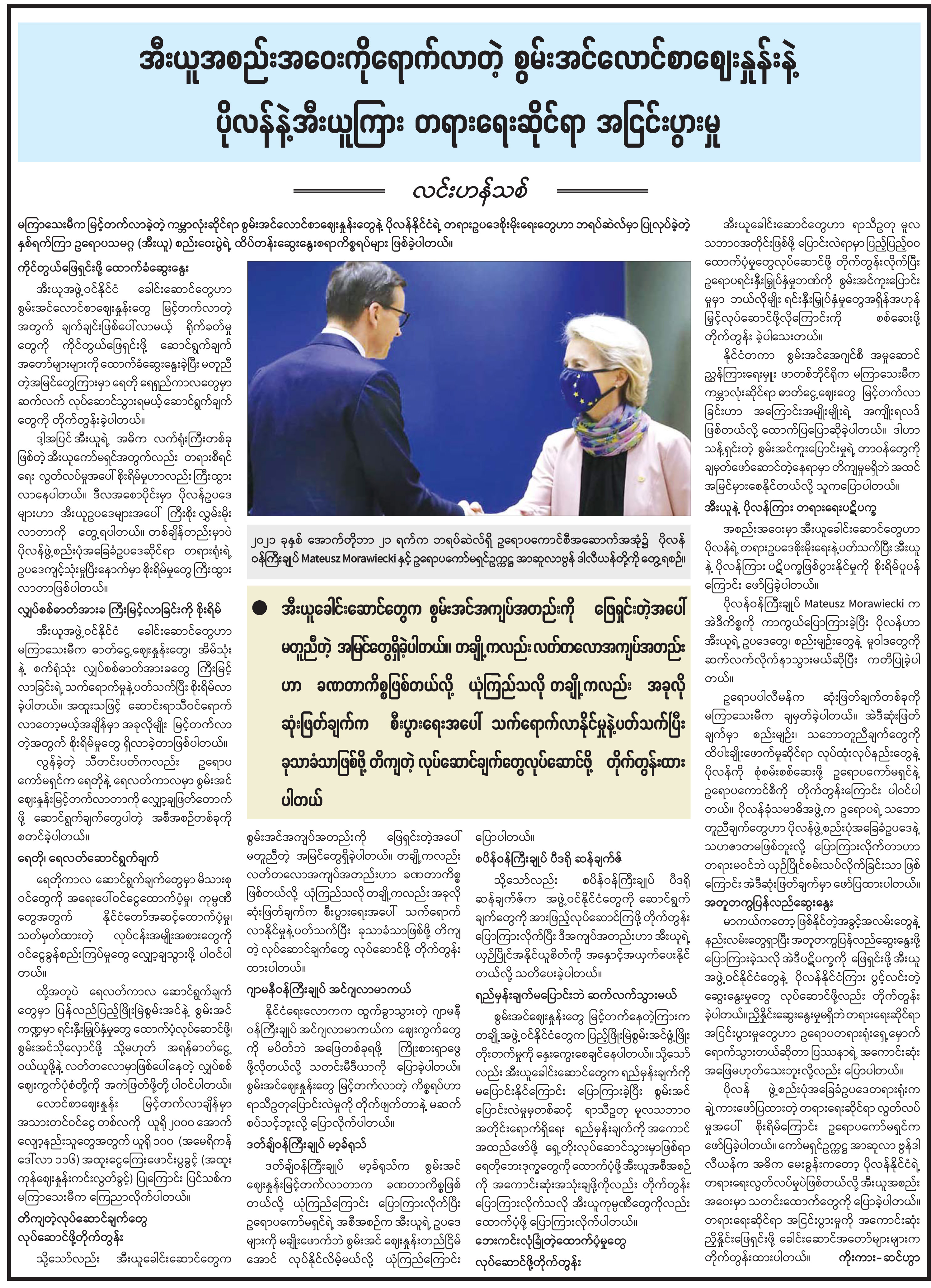 အီးယူအစည်းအဝေးကိုရောက်လာတဲ့ စွမ်းအင်လောင်စာဈေးနှုန်းနှင့် ပိုလန်နှင့်အီးယူကြား တရားရေးဆိုင်ရာ အငြင်းပွားမှု