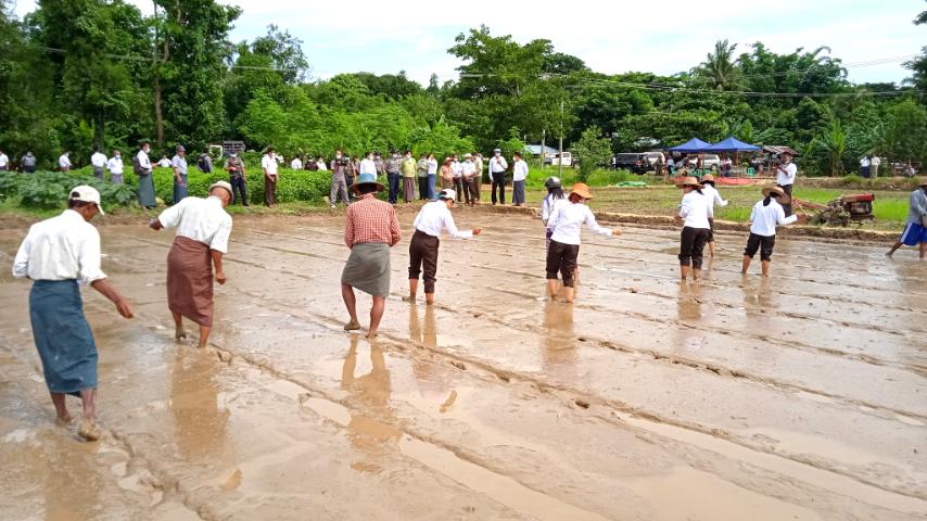 ၂၀၂၂-၂၀၂၃ မိုးစပါးဧက(၁၀၀)တွင် တစ်ဧက တင်း(၁၀၀)ထွက်ရှိရေး ဘောင်ပျိုးစနစ်ဖြင့် ပျိုးထောင်ပွဲသို့ ဧရာဝတီတိုင်းဒေသကြီး အစိုးရအဖွဲ့ ဝန်ကြီးချုပ် ဦးတင်မောင်ဝင်းနှင့် အဖွဲ့ဝင်များ၊ ခရိုင်နှင့်မြို့နယ်တို့မှ တာဝန်ရှိသူများ၊ မြို့နယ်စိုက်တိုးမြှင့်အဖွဲ့၊ မြို့နယ်စိုက်ပျိုးရေးဦးစီးဌာနမှ တာဝန်ရှိသူများ၊ တောင်သူများ စုစုပေါင်းအင်အား (၈၃)ဦး တက်ရောက်ခဲ့ပြီး ဘောင်ပျိုးစနစ်ဖြင့် ပျိုးထောင်ခြင်းကို ကြည့်ရှုအားပေးခဲ့ကြသည်။