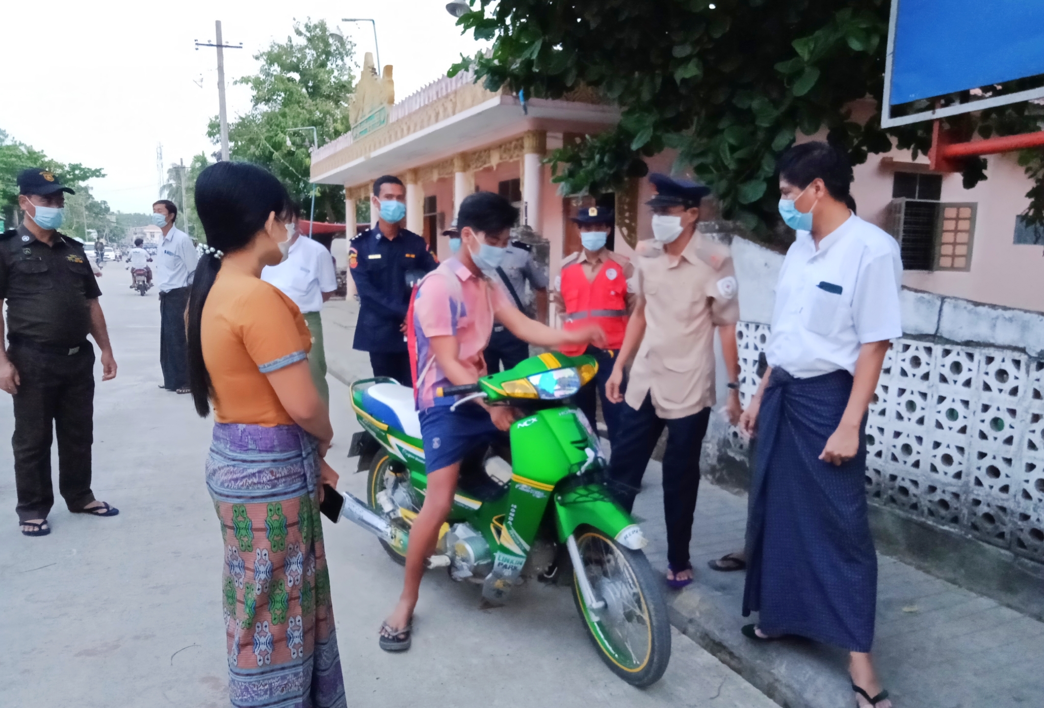 ထိုသို့ဆောင်ရွက်ရာတွင် တိုင်းဒေသကြီး(၁) လွှတ်တော်ကိုယ်စားလှယ် ဒေါ်ရီရီထွန်း၊ မြို့နယ် အထွေထွေအုပ်ချုပ်ရေး ဦးစီးဌာန မြို့နယ်အုပ်ချုပ်ရေးမှူး ဦးလှမင်းသူ၊ မြို့နယ်ဆရာဝန်ကြီး ဒေါက်တာမျိုးကျော်အောင်နှင့် ဌာနဆိုင်ရာ တာဝန်ရှိသူများက မြို့နယ်အတွင်း နှာခေါင်းစည်းမတပ်ပဲ သွားလာနေကြသော ပြည်သူများအား ရှောင်တခင် စစ်ဆေးခြင်းတို့ကို ပြုလုပ်ခဲ့သည်။