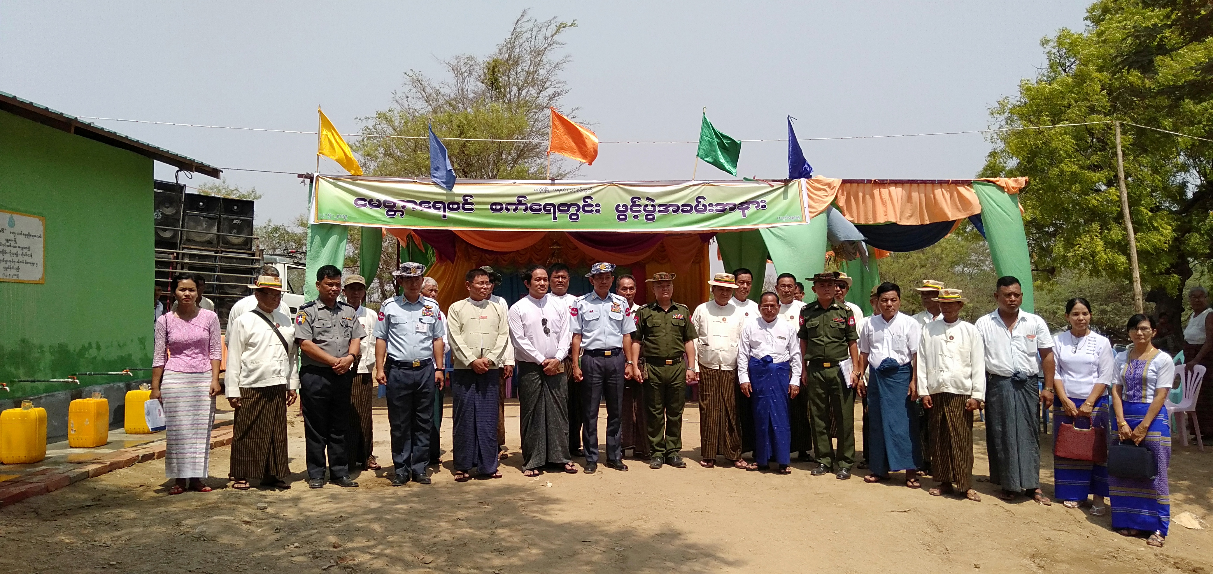 အဆိုပါ စက်ရေတွင်းအား အလယ်ပိုင်းတိုင်းစစ်ဌာနချုပ်၏ ကူညီပံ့ပိုးမှုဖြင့် "မေတ္တာရေစင်" ကျေးလက်ရေရရှိရေးအသင်းမှ လှူဒါန်းခဲ့ပြီး စက်ရေတွင်းဖွင့်ပွဲသို့ အလယ်ပိုင်းတိုင်းစစ်ဌာနချုပ် မိတ္ထီလာမြို့နယ် ရှမ်းတဲလေတပ်စခန်းဌာနချုပ်မှူး ဗိုလ်ချုပ်စိုးအောင်နှင့် အရာရှိစစ်သည်များ အလှူရှင်မိသားစုဝင်များ မလှိုင်မြို့နယ် အထွေထွေအုပ်ချုပ်ရေးဦးစီးဌာန မြို့နယ်ဦးစီးမှူး ဦးငွေဒိုး နှင့် ဌာနဆိုင်ရာ အရာရှိဝန်ထမ်းများ မြို့နယ်ပြည်ခိုင်ဖြိုးပါတီ ဥက္ကဌနှင့် ပါတီဝင်များ စစ်မှုထမ်းဟောင်းအဖွဲ့ဝင်များ စုစုပေါင်းအင်အား ၇၀ ဦးခန့်တတ်ရောက်ဖွင့်လှစ်ခဲ့ပြီး မလှိုင်မြို့ ရွှေကျင်ဘုန်းတော်ကြီးကျောင်း၌ ရေစက်ချ အခမ်းအနားကျင်းပပြုလုပ်ခဲ့သည်။