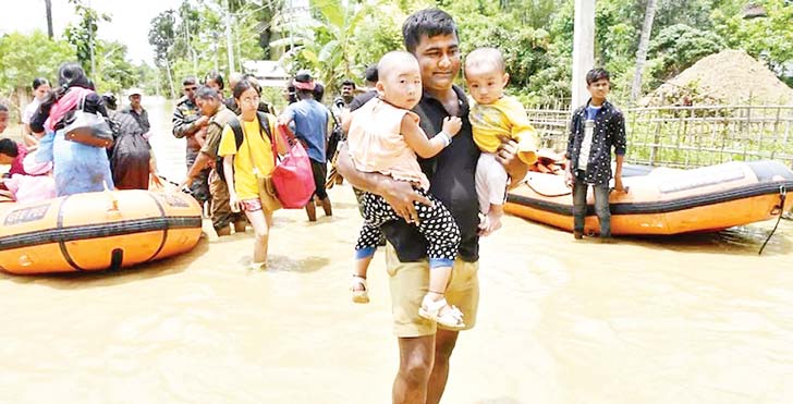 ရေကြီးရေလျှံမှုဒဏ် ခံခဲ့ရသည့် ဒေသများမှ လူဦးရေထောင်ပေါင်းများစွာကိုလည်း အာသံပြည်နယ်အစိုးရက ယာယီကယ်ဆယ်ရေး စခန်းများသို့ ရွှေ့ပြောင်းပေးထားကြောင်း သိရသည်။