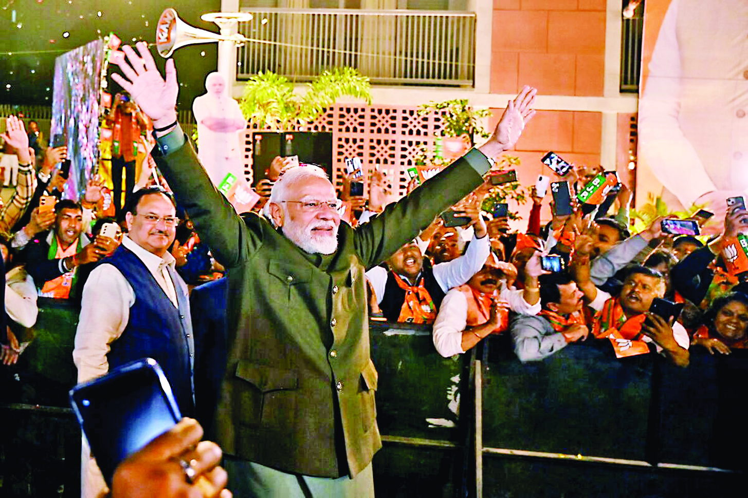 ဟိန္ဒူ အမျိုးသားရေးပါတီဖြစ်သည့် ဘရာတီယာဂျနာတာ ပါတီသည် ၎င်း၏ အဓိကအတိုက်အခံပါတီဖြစ်သည့် ကွန်ဂရက် ပါတီအား နိုင်ငံအနောက်ပိုင်း ရာဂျာစသန်ပြည်နယ် မဒရာပရာဒေ့ရှ်နှင့် ချာတီစဂတ်ပြည်နယ်တို့တွင် မဲအများစုရရှိကာ အနိုင်ရရှိခဲ့သည်။ အိန္ဒိယနိုင်ငံဖွံ့ဖြိုးတိုးတက်မှုကို ဆောင်ကြဉ်းပေးနိုင်ခဲ့သည်ကို စွမ်းအားအဖြစ်ရယူကာ ၎င်း၏ပါတီသည် လာမည့်ရွေးကောက်ပွဲတွင် အနိုင်ရရှိမည်ဖြစ်ကြောင်း ဝန်ကြီးချုပ်မိုဒီက ဘရာတီယာဂျနာတာပါတီ ဌာနချုပ်တွင် ပြောကြားသည်။ ယခုပဏာမရရှိခဲ့သည့် ရွေးကောက်ပွဲရလဒ်သည် နိုင်ငံဖွံ့ဖြိုး တိုးတက်မှုကိုဖော်ပြသည့် အတိုင်းအတာတစ်ခု ဖြစ်ခဲ့ပြီး မိမိတို့ပါတီက အိန္ဒိယနိုင်ငံအပေါ် ကမ္ဘာတစ်ဝန်း၏ ယုံကြည်မှုကို ဆောင်ယူလာမည်ဟု ၎င်းက ထပ်လောင်းပြောကြားသည်။
