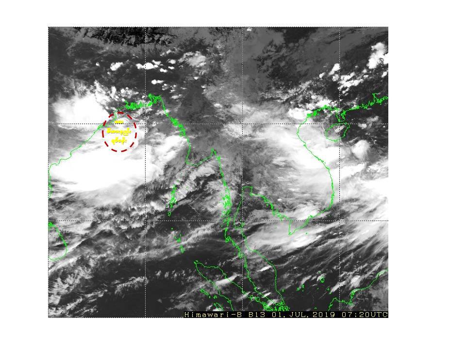 ဘင်္ဂလားပင်လယ်အော်အခြေအနေ။ ယနေ့မြန်မာစံတော်ချိန် (၁၃:၃၀)နာရီအချိန် တိုင်းထွာချက်များအရ ဘင်္ဂလားပင်လယ်အော်အနောက်မြောက်ပိုင်း နှင့် ယင်းနှင့်ဆက်စပ်လျက်ရှိသော အိန္ဒိယနိုင်ငံ၊ သြရိဿကမ်းခြေတွင် ဖြစ်ပေါ်နေသော လေဖိအားနည်းရပ်ဝန်း (Low Pressure Area)သည် ဆက်လက် တည်ရှိနေပါသည်။ အဆိုပါ လေဖိအားနည်းရပ်ဝန်းသည် ပိုမိုအားကောင်းလာကာ နောက်(၂၄)နာရီအတွင်း မုန်တိုင်းငယ် (Depression) အဖြစ်သို့ ရောက်ရှိနိုင်သည်ဟု ခန့်မှန်းရပါသည်။ ကပ္ပလီပင်လယ်ပြင်နှင့် ဘင်္ဂလားပင်လယ်အော်တို့တွင် မုတ်သုံလေအားကောင်းရာမှ အားအလွန်ကောင်း နေပါသည်။