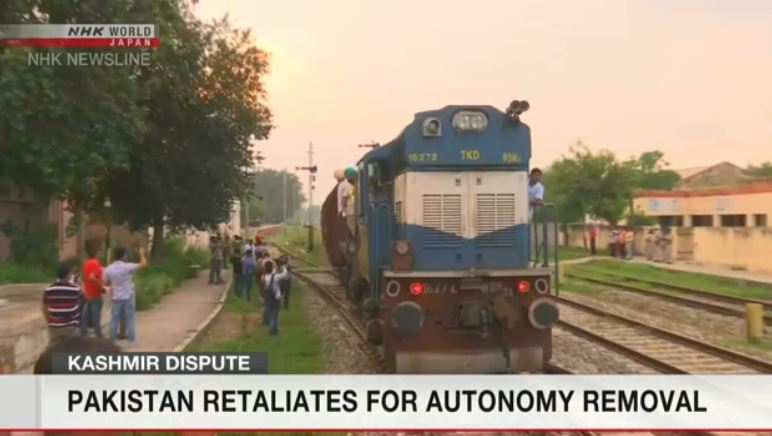 အိန္ဒိယအုပ်ချုပ်သော ကက်ရှ်မီးယားဒေသ၏ ကိုယ်ပိုင်အုပ်ချုပ်ခွင့်ကို အိန္ဒိယအစိုးရက ရုပ်သိမ်းလိုက်ပြီးနောက် အိန္ဒိယနှင့် ဆက်သွယ်ထားသော အဓိကကျသည့် ရထားပြေးဆွဲမှုကို ဆိုင်းငံ့ထားခဲ့ကြောင်း ပါကစ္စတန် က ဆိုသည်။