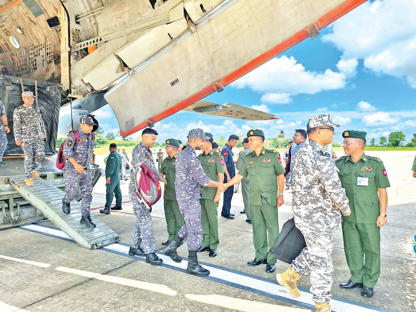 မြန်မာ့တပ်မတော်နှင့် အိန္ဒိယတပ်မတော်နှစ်ရပ်အကြား အပြန်အလှန်ခင်မင်ယုံကြည်မှု ချစ်ကြည်ရင်းနှီးမှုများ ပိုမိုတိုးတက်လာစေရန်နှင့် ယဉ်ကျေးမှုအမွေအနှစ်ဆိုင်ရာ လေ့လာရေးခရီးစဉ်များ အပြန်အလှန်လည်ပတ်ရန်အတွက် COL SHRIKANT JETHI ဦးဆောင်ပြီး အိန္ဒိယတပ်မတော် (ကြည်း၊ ရေ၊လေ)မှ အရာရှိ၊ စစ်သည်များပါဝင်သော အိန္ဒိယတပ်မတော် ချစ်ကြည်ရေးကိုယ်စားလှယ်အဖွဲ့သည် ယနေ့ နံနက်ပိုင်းတွင် နေပြည်တော်လေဆိပ်သို့ ရောက်ရှိရာ နေပြည်တော်တိုင်းစစ်ဌာနချုပ် ဒုတိယတိုင်းမှူး ဗိုလ်မှူးကြီး နေအောင်စိုး၊ တပ်မတော်အရာရှိကြီးများ၊ မြန်မာနိုင်ငံဆိုင်ရာ အိန္ဒိယနိုင်ငံစစ်သံမှူး JASWINDER S GILL တို့က လေဆိပ်၌ ကြိုဆိုနှုတ်ဆက်ကြသည်။