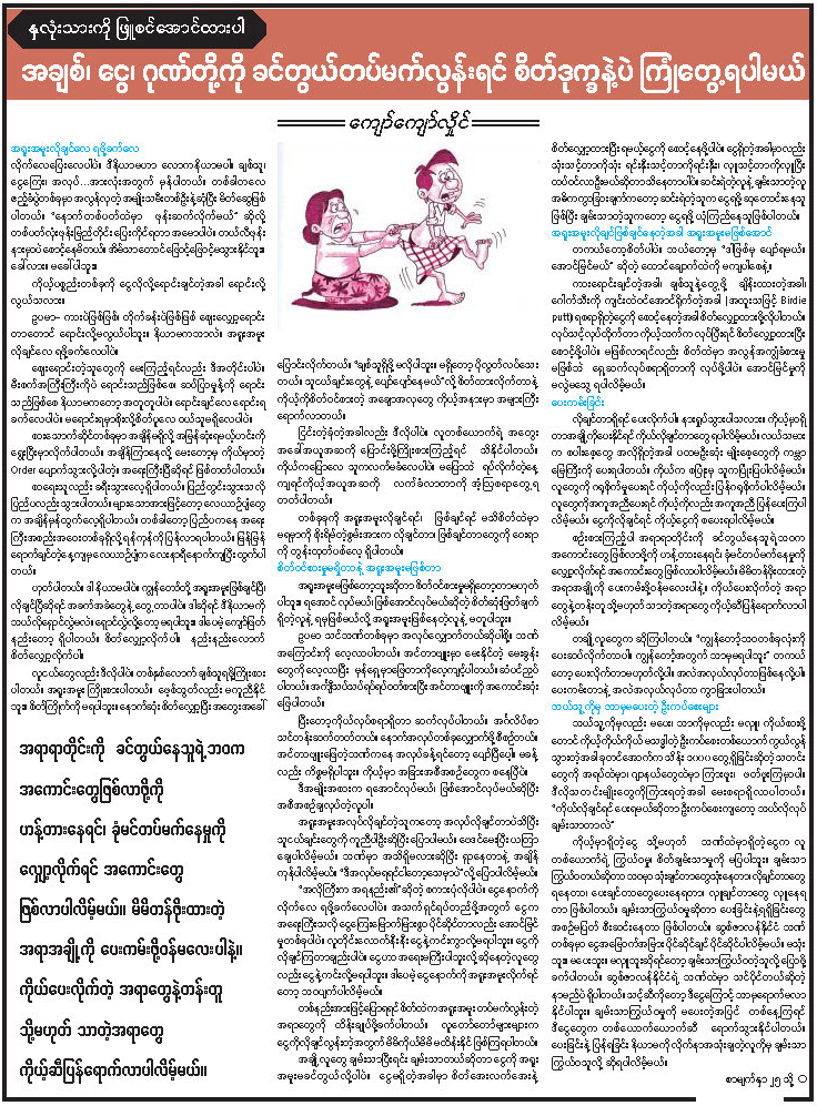 အချစ်၊ ငွေ၊ ဂုဏ်တို့ကို ခင်တွယ်တပ်မက်လွန်းရင် စိတ်ဒုက္ခနဲ့ပဲ ကြုံတွေ့ရပါမယ်