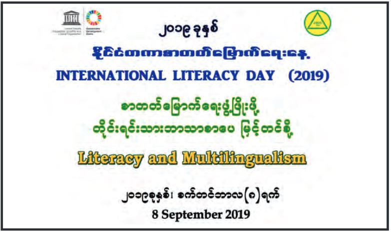 ယခုနှစ် ဆောင်ပုဒ်မှာ “Literacy and Multilingua-lism”သည် “စာတတ်မြောက်ရေး ဖွံ့ဖြိုးဖို့ တိုင်းရင်းသား ဘာသာစာပေ မြှင့်တင်စို့” ဟု မြန်မာမှုပြုထားပါသည်။ မိခင်တိုင်းရင်းသား ဘာသာစကားများ အသုံးပြု၍ အခြေခံစာတတ် မြောက်မှုမှသည် ကျွမ်းကျင်ပိုင်နိုင်လာအောင် သင်ယူခြင်းသည် ယနေ့ခေတ် ပညာရေး၏ အဓိကအရေးကြီးသော အချက် ဖြစ်လာနေပါသည်။ အထူးသဖြင့် သင်ယူမှုအခွင့်အလမ်း နည်းပါးသော မသန်စွမ်းသူများ၊ ဝေးလံခေါင်ပါးသော အရပ်ဒေသများမှ တိုင်းရင်းသား မျိုးနွယ်စုများ၊ သဘာဝဘေး အန္တရာယ်များနှင့် မငြိမ်းချမ်းမှုများကြောင့် သင်ကြား၊ သင်ယူခွင့် ဆုံးရှုံးနေသူများ၊ နယ်စပ်ဒေသများမှ ရွှေ့ပြောင်းမိသားစုများအားလုံးအတွက် အကျုံးဝင်အောင် ထည့်သွင်းစဉ်းစားကြရမည် ဖြစ်ပါသည်။ တိုင်းရင်းသား ဘာသာစာပေ သင်ကြားမှုများ မြှင့်တင်ဆောင်ရွက်ပေးခြင်းသည် အရည်အသွေး ပြည့်ပညာရေး၏ သင်ကြား၊ သင်ယူမှုရလဒ်များ တိုးတက်လာစေသော နည်းလမ်းတစ်ရပ်လည်းဖြစ်ပြီး အမျိုးမျိုး ကွဲပြားနေသော ယဉ်ကျေးမှုဓလေ့ ထုံးစံများ၏ အပြန်အလှန် ဆက်နွှယ်နေမှုများကိုလည်း သိရှိနားလည်လာစေပါသည်။ မိမိနိုင်ငံတွင် မတူကွဲပြားသော တိုင်းရင်းသားမျိုးနွယ်စုများ အတူတကွ ယှဉ်တွဲနေထိုင်ရင်း သင်ယူလေ့လာခြင်းများကိုလည်း အတူတကွ လုပ်ဆောင်နိုင်မှုကို ပိုမိုသဘောပေါက်သိရှိလာ စေပါသည်။