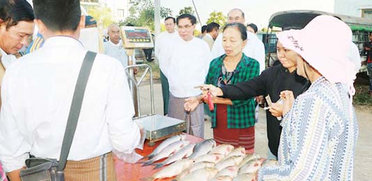 ပဲခူးတိုင်းဒေသကြီး အစီအစဉ်ဖြင့် နိုင်ငံ့ဝန်ထမ်းအိမ်ရာများနှင့် အငြိမ်းစားဝန်ထမ်းအိမ်ရာများ၌ အပတ်စဉ် အခြေခံစားသုံးကုန်နှင့် အသား/ငါး/ဥ ဟင်းသီးဟင်းရွက်များ ဈေးနှုန်းသက်သာစွာဖြင့် ရောင်းချပေးနေမှုကို ယနေ့နံနက်ပိုင်းက တိုင်းဒေသကြီး ဝန်ကြီးချုပ် ဦးမျိုးဆွေဝင်း လိုက်လံကြည့်ရှု အားပေးသည်။