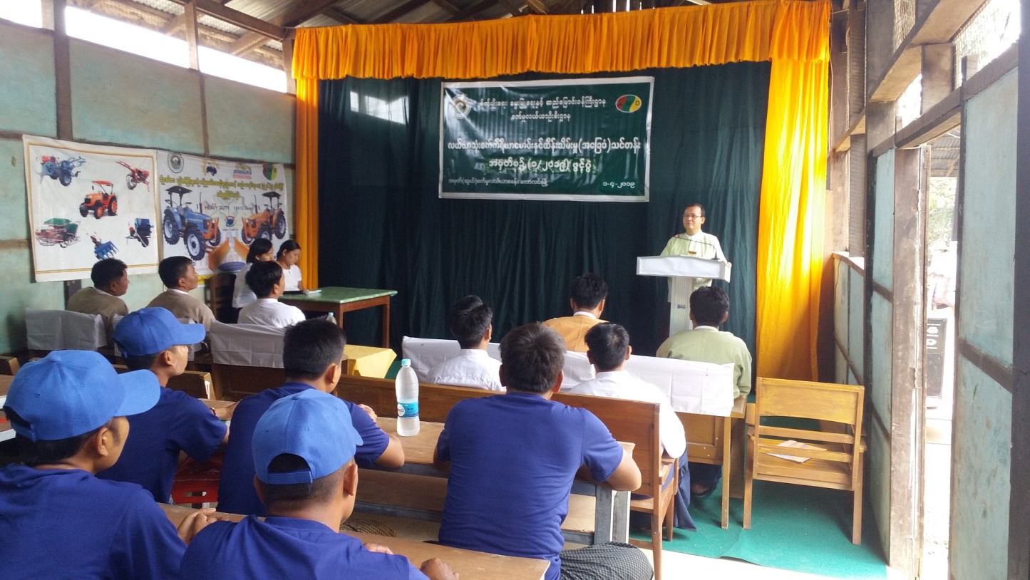 အခမ်းအနားတွင် ပြည်သူ့လွှတ်တော်ကိုယ်စားလှယ် ဦးမျိုးဇော်အောင်နှင့် မြို့နယ်စီမံခန့်ခွဲမှု ကော်မတီဉက္ကဌ ဦးဇော်ဝင်းတို့က အမှာစကားပြောကြားပြီး  ကသာခရိုင်စက်မှုလယ်ယာဦးစီးမှူး ဦးမောင်မောင်ညွှန့်က စက်မှုလယ်ယာအကြောင်းရှင်းလင်းပြောကြားသည်။ ထို့နောက် စက်မှုလယ်ယာ ဦးစီးဌာန မြို့နယ်ဦးစီးမှူး ဦးခန့်ဇင်မောင်က သင်တန်းဖွင့်လှစ်ရခြင်းနှင့်ပတ်သက်၍ ရှင်းလင်းပြောကြား သည်။ အဆိုပါသင်တန်းအား ဧပြီ ၁ရက်နေ့မှ ၁၂ရက်နေ့အထိ ၁၂ရက်ကြာဖွင့်လှစ်ပြီး သင်တန်းသား(၃၀) ဦး တက်ရောက်သည်။ သင်တန်းနည်းပြများက စာတွေ့လက်တွေ့ သင်ကြားပို့ချသွားမည် ဖြစ်ကြောင်း မြို့နယ်ပြန်ကြားရေးနှင့်ပြည်သူ့ဆက်ဆံရေးဦးစီးဌာနမှ သိရသည်။