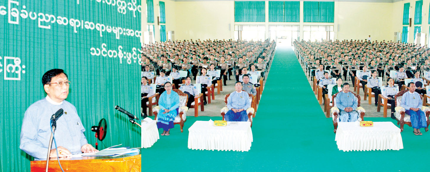 ဦးစွာ ပြည်ထောင်စုရာထူးဝန်အဖွဲ့ဝင်က နိုင်ငံအတွင်း ပညာတတ်များ ပေါကြွယ်ဝမှသာ နိုင်ငံတော် ဖွံ့ဖြိုးတိုးတက်ရေးအတွက် အထောက်အကူပြုနိုင်မည်ဖြစ်ပြီး ပညာတတ်ပုဂ္ဂိုလ်များက နိုင်ငံ၏ အေးချမ်းသာယာမှု၊     တည်ငြိမ်ဖွံ့ဖြိုးမှု၊   လူမှုစီးပွားဘဝများကို ဦးဆောင်နိုင်မည်ဖြစ်ပါကြောင်း၊ နိုင်ငံ့အနာဂတ်ကို ဦးဆောင်မည့် ပညာတတ်အရင်းအမြစ်ကောင်းများ မွေးထုတ်နိုင်ရေး အလေးထားမှာကြားလိုကြောင်း၊  နိုင်ငံ့ဝန်ထမ်း ဥပဒေ၊   နည်းဥပ‌ဒေ၊   စည်းမျဉ်း၊ စည်းကမ်း၊ လုပ်ထုံးလုပ်နည်း၊ အမိန့် ညွှန်ကြားချက်များနှင့် တစ်မျိုးသားလုံးပညာ‌ရည်မြင့်မားရေး နိုင်ငံ့ဝန်ထမ်းကျင့်ဝတ်အပါး ၃၀    ကို   တိတိကျကျလိုက်နာ စောင့်ထိန်းကာ  ပါတီနိုင်ငံရေးကင်းရှင်းအောင် ပြုမူနေထိုင်ကြရန်  တိုက်တွန်းပြောကြားသည်။