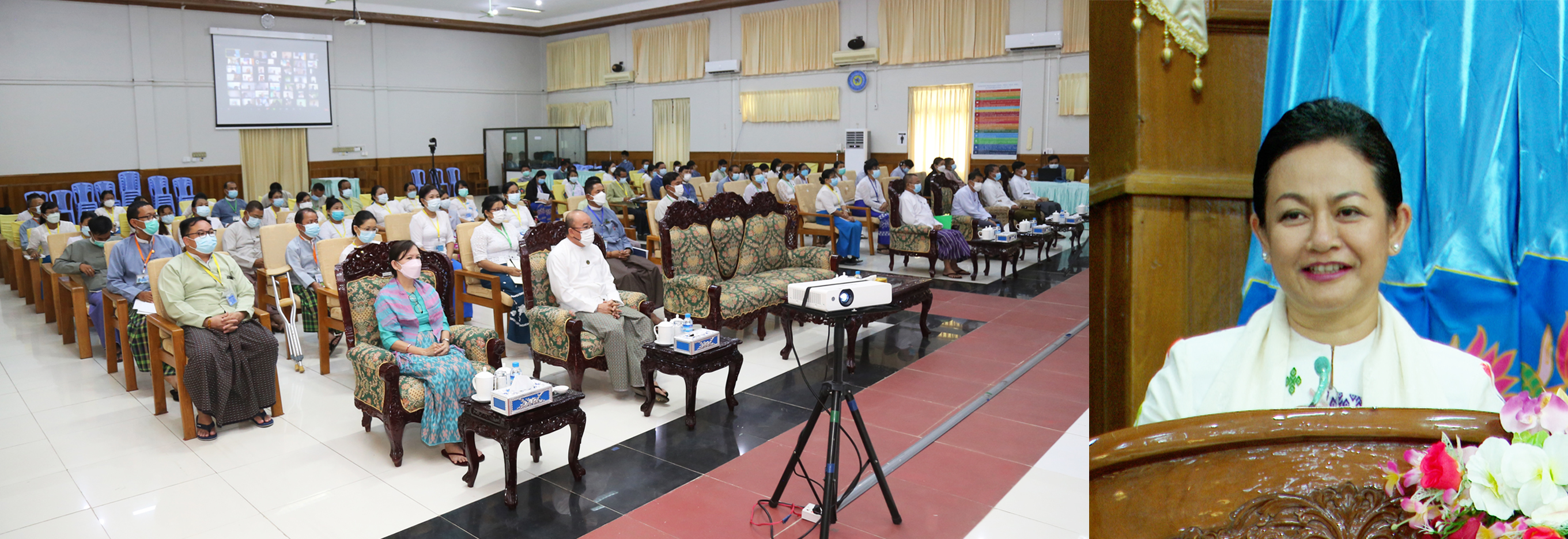 ဖွင့်ပွဲအခမ်းအနားသို့ ပြည်နယ်တိုင်းဒေသကြီးများရှိ လူမှုဝန်ထမ်းဦးစီးဌာန၊ ဘေး အန္တရာယ်ဆိုင်ရာ စီမံခန့်ခွဲမှု ဦးစီးဌာန၊ ပြန်လည်ထူထောင်ရေးဦးစီးဌာနများမှ Online ဖြင့် တက်ရောက်ကြကြောင်း သိရသည်။