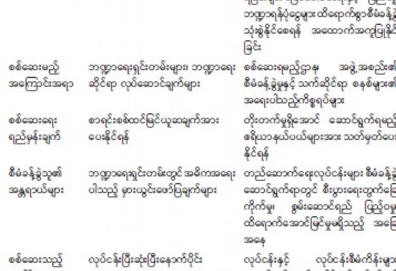 (က) မူဝါဒချမှတ်ခြင်းနှင့် လုပ်ငန်းများအကောင်အထည်ဖော် ဆောင်ရွက်ရာတွင် တွေ့ကြုံရနိုင် သည့် အဓိကပြဿနာရပ်များကို အချိန်နှင့်တစ်ပြေးညီ ဖော်ထုတ်နိုင်စေခြင်း၊