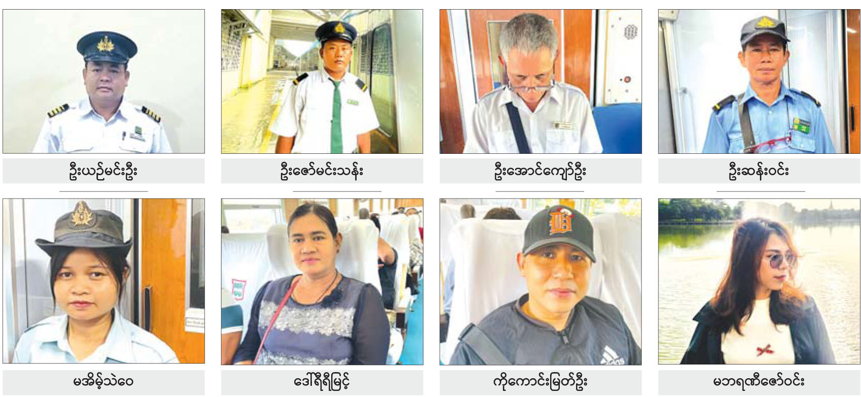 အဆိုပါရထားခရီးစဉ်များ၌ ခရီးသွားပြည်သူများ ဘေးအန္တရာယ်ကင်းရှင်းစွာ ခရီးသွားလာနိုင်စေရန် ဝန်ဆောင်မှု အပြည့်အဝဆောင်ရွက်ပေးနေကြသည့် မြန်မာ့မီးရထားဝန်ထမ်းများနှင့် ၎င်းတို့၏ ကောင်းမွန်လှသည့် ဝန်ဆောင်မှုများကြောင့် စိတ်ချမ်းမြေ့ပျော်ရွှင်စွာ လိုက်ပါစီးနင်းခဲ့ကြသည့် ခရီးသွားပြည်သူများ၏ ဝမ်းသာပီတိစကားသံများကို မေးမြန်းမျှဝေရေးသားဖော်ပြလိုက်ရပါသည်-