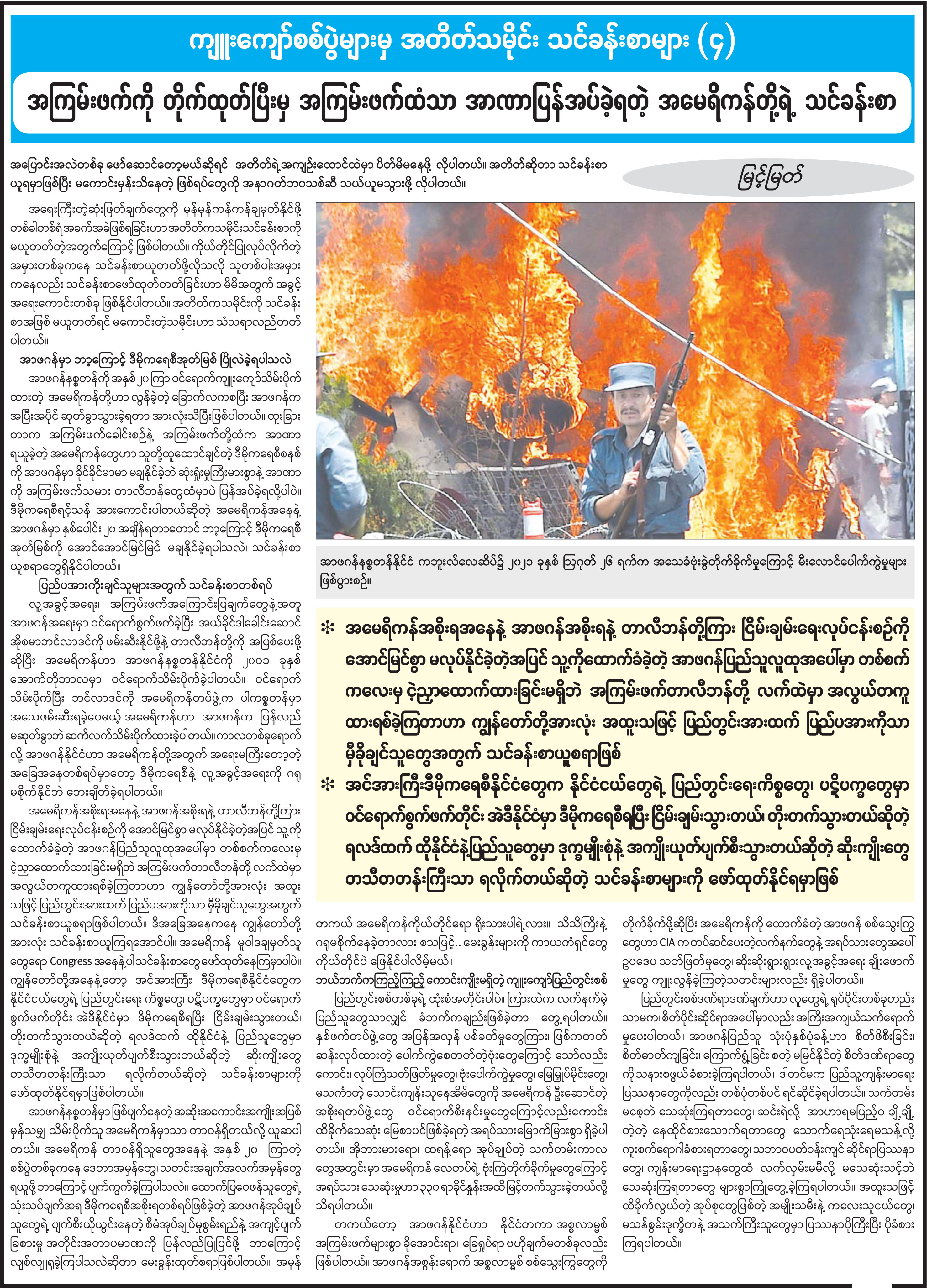 အကြမ်းဖက်ကိုတိုက်ထုတ်ပြီးမှ အကြမ်းဖက်ထံသာ အာဏာပြန်အပ်ခဲ့ရတဲ့ အမေရိကန်တို့ရဲ့ သင်ခန်းစာ