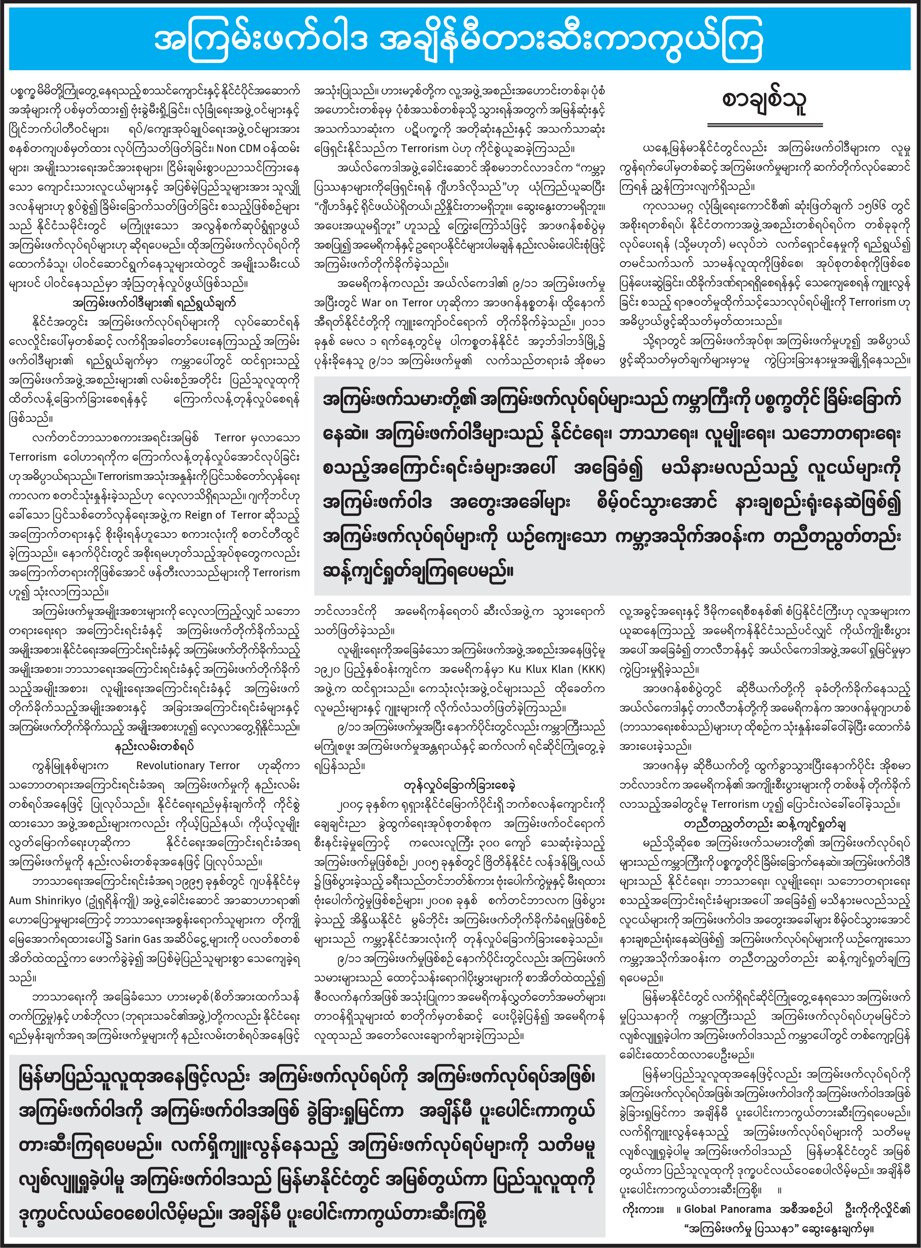 အကြမ်းဖက်ဝါဒ အချိန်မီတားဆီးကာကွယ်ကြ