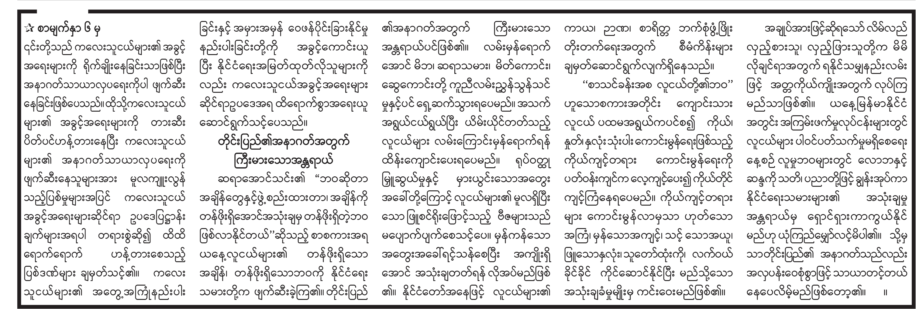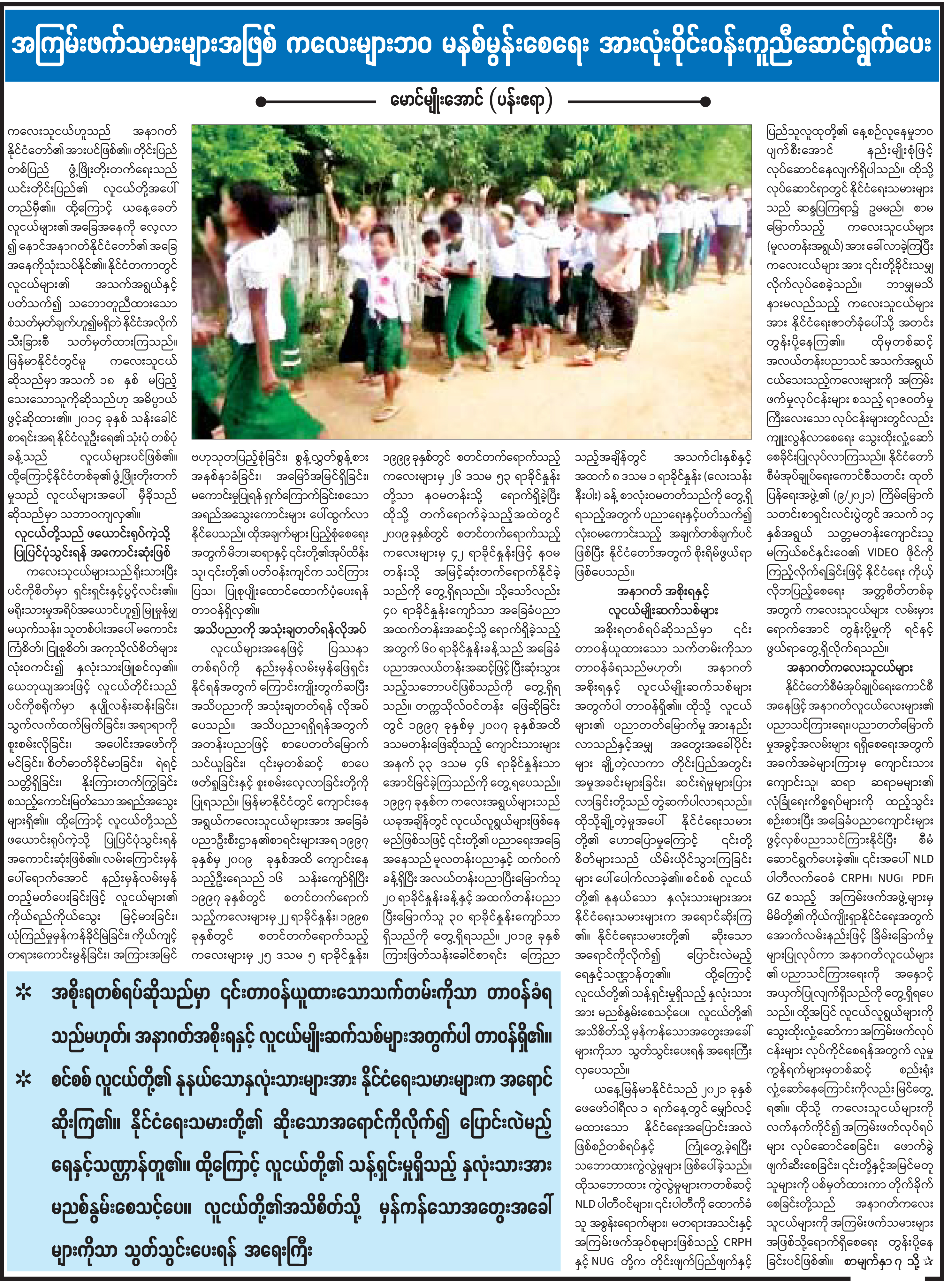 အကြမ်းသမားအဖြစ် ကလေးများဘဝ မနစ်မွန်းစေရေး အားလုံးဝိုင်းဝန်းကူညီဆောင်ရွက်ပေး