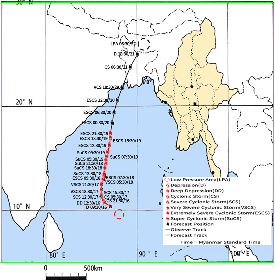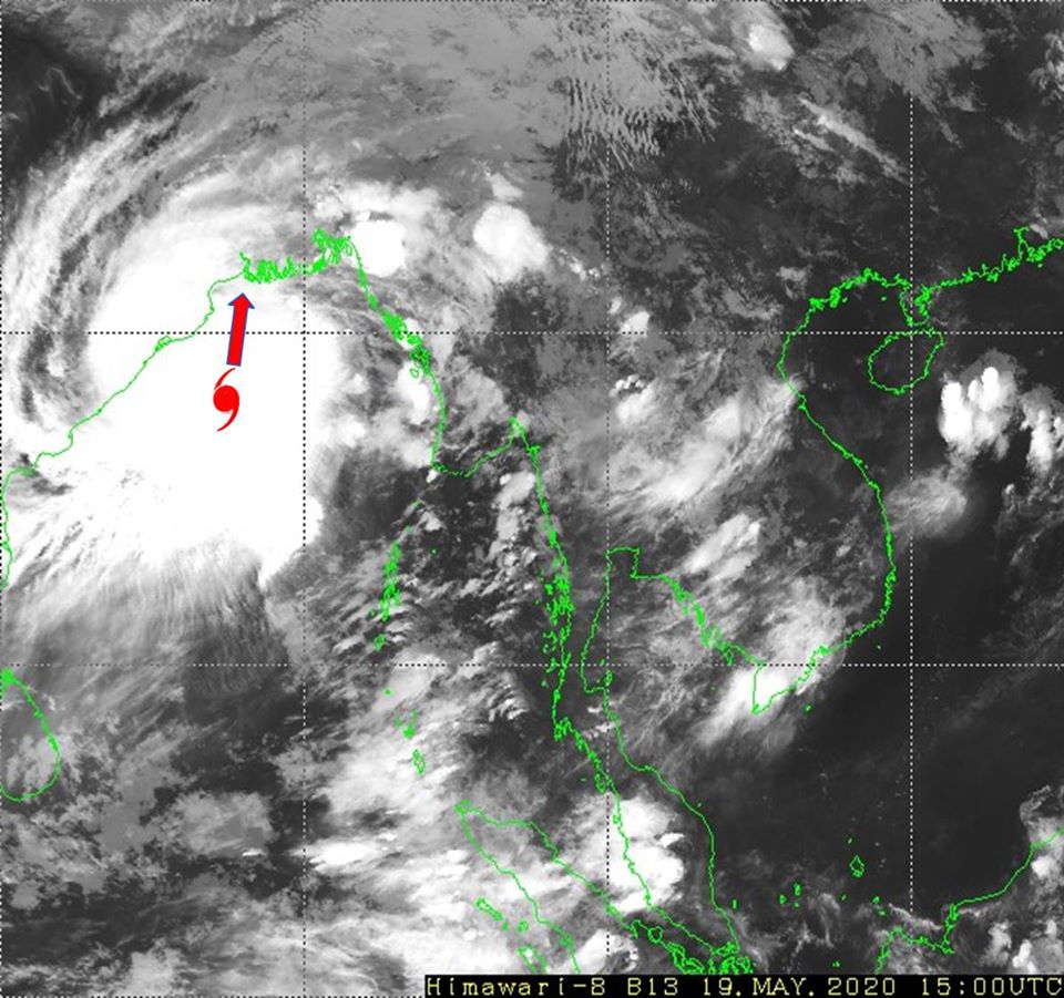 ၁။ (က) ယနေ့မြန်မာစံတော်ချိန် (၂၁:၃၀)နာရီအချိန် တိုင်းထွာချက်များအရ ဘင်္ဂလားပင်လယ် အော်အနောက်အလယ်ပိုင်းတွင် ဖြစ်ပေါ်နေသော အလွန့်အလွန်အားကောင်းသော ဆိုင်ကလုန်းမုန်တိုင်း(Extremely Severe Cyclonic Storm) အမ်ဖန်(AMPHAN)သည် မြောက်ဘက်သို့ ရွေ့လျားခဲ့ပြီး၊ ဘင်္ဂလားပင်လယ်အော်အနောက်အလယ်ပိုင်းနှင့် ယင်းနှင့် ဆက်စပ်လျက်ရှိသော ဘင်္ဂလားပင်လယ်အော်အနောက်မြောက်ပိုင်းသို့ ရောက်ရှိခဲ့ကာ၊ အိန္ဒိယနိုင်ငံ၊ ပါရာဒစ်ပ်မြို့(Paradip) (ဩရိဿ- Odisha)၏ တောင်ဘက် ရေမိုင် (၁၇၅)မိုင်ခန့်၊ ဒီဂါမြို့ (Digha)၏ တောင်ဘက် ရေမိုင် (၂၅၅)မိုင်ခန့်၊ ဘင်္ဂလားဒေ့ရှ် နိုင်ငံ၊ ကမ်ပူပါရာမြို့(Khepupara)၏ အနောက်တောင်ဘက် ရေမိုင် (၃၃၀)မိုင်ခန့်၊ မြန်မာနိုင်ငံ၊ မောင်တောမြို့(Maungdaw)၏ အနောက်-အနောက်တောင်ဘက် ရေမိုင် (၃၆၅)မိုင်ခန့်နှင့် စစ်တွေမြို့ (Sittwe)၏ အနောက်-အနောက်တောင်ဘက် ရေမိုင် (၃၇၀)မိုင်ခန့်အကွာ ပင်လယ်ပြင်ကို ဗဟိုပြုနေပါသည်။