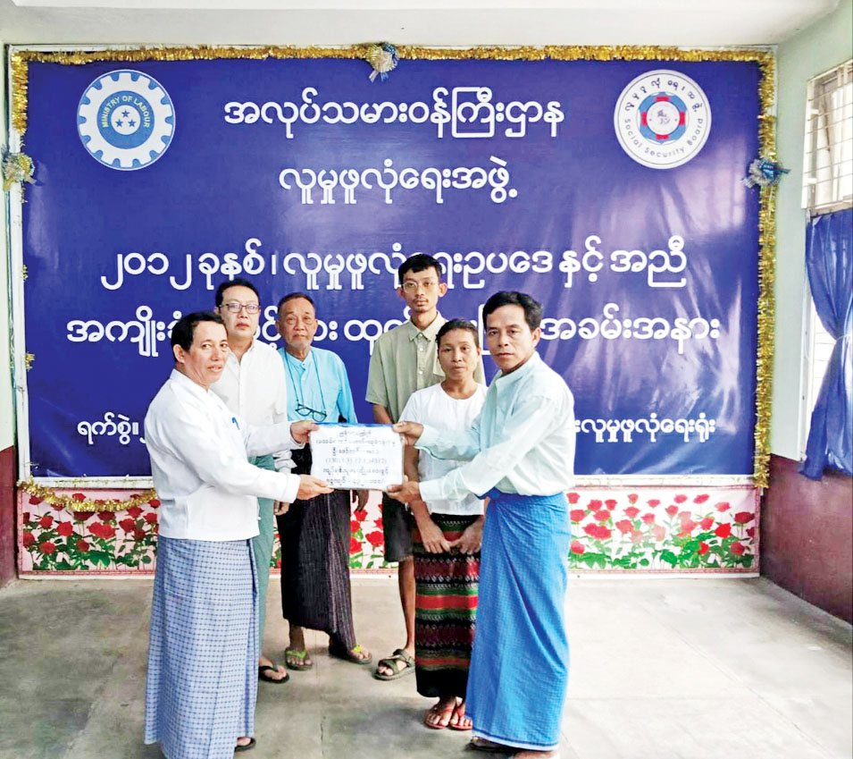 အခမ်းအနားတွင် လူမှုဖူလုံရေးအဖွဲ့ ရန်ကုန်တိုင်းဒေသကြီး တာဝန်ခံ အရာရှိ ဒုတိယညွှန်ကြားရေးမှူး ဦးသိန်းနွဲ့ဦးက ဒဂုံမြို့သစ်(တောင်ပိုင်း) မြို့နယ် လူမှုဖူလုံရေးရုံးတွင် အကျုံးဝင်မှတ်ပုံတင်ထားသော မြန်မာ့မဏ္ဏိုင် (ပလတ်စတစ်လောင်းလုပ်ငန်း)မှ အာမခံအလုပ်သမား ဦးဇော်လင်းအောင်၏ အလုပ်ခွင်ထိခိုက်မှုကြောင့် ကျန်ရစ်သူ ငွေလုံးငွေရင်း အကျိုးခံစားခွင့် ငွေကျပ် ၄၃၂၀၀၀၀ ကို သေဆုံးသူ၏ ဖခင်ဖြစ်သူ ဦးချစ်စံအောင်ထံသို့ လက်ဝယ်ပေးအပ်ခဲ့ကြောင်း သိရသည်။