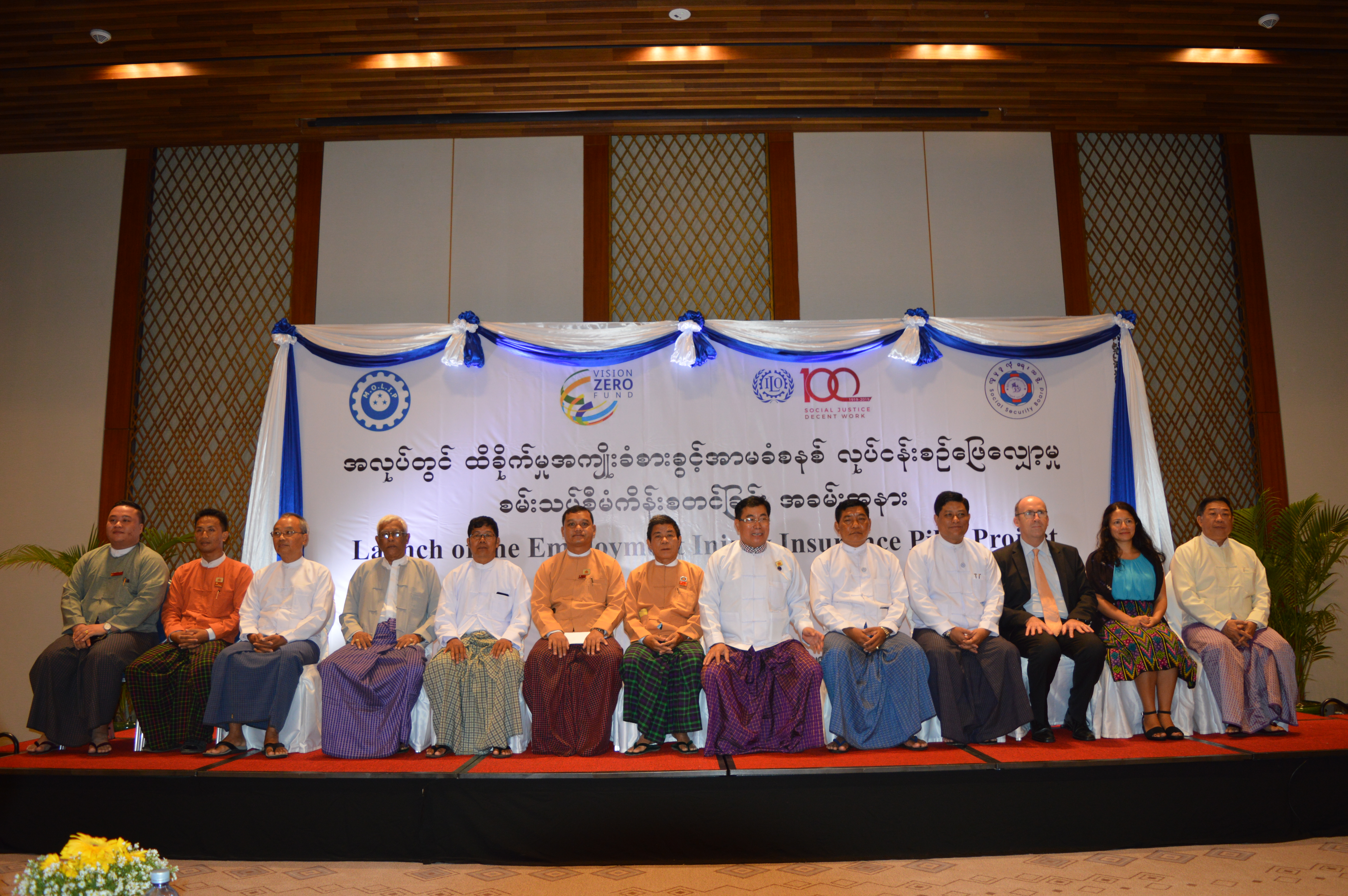 အလုပ်သမား၊ လူဝင်မှုကြီးကြပ်ရေးနှင့် ပြည်သူ့အင်အားဝန်ကြီးဌာန၊ လူမှုဖူလုံရေးအဖွဲ့နှင့် အပြည်ပြည်ဆိုင်ရာအလုပ်သမားအဖွဲ့ (ILO)- VZF တို့ပူးပေါင်း၍ အလုပ်တွင်ထိခိုက်မှု အကျိုးခံစားခွင့် အာမခံစနစ် လုပ်ငန်းဖြေလျော့မှု စမ်းသပ်စီမံကိန်း (EII Pilot Project Launching) စတင်ခြင်းအခမ်းအနားကို ယနေ့ နံနက်ပိုင်းတွင် ရန်ကုန်တိုင်းဒေသကြီး၊ လှိုင်သာယာမြို့နယ်၊ လှိုင်သာယာစက်မှုဇုန် (၆)၊ ပန်းလှိုင်ဂေါက်ကွင်းအိမ်ရာဝင်းရှိ Awei Metta Hotel (Ballroom) ၌ ကျင်းပသည်။