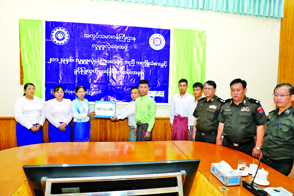 အလုပ်သမားဝန်ကြီးဌာန လူမှုဖူလုံရေးအဖွဲ့က ၂၀၁၂ ခုနှစ် လူမှုဖူလုံရေးဥပဒေနှင့်အညီ အလုပ်တွင် ထိခိုက်သေဆုံးမှုနှင့်ဆိုင်သည့် ငွေကြေးအကျိုးခံစားခွင့် ခွင့်ပြုထုတ်ပေးခြင်း အခမ်းအနားကို ယနေ့ နံနက်ပိုင်းတွင် လူဝင်မှုကြီးကြပ်ရေးနှင့် ပြည်သူ့အင်အားဝန်ကြီးဌာန၌ ကျင်းပသည်။