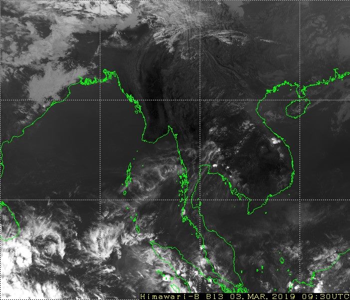 ၂၀၁၉ ခုနှစ်၊ မတ်လ (၃)ရက်နေ့ ညနေ(၄:ဝ၀)နာရီအချိန် မိုးဇလမှ ထုတ်ပြန်ချက်အရ ကပ္ပလီပင်လယ်ပြင်နှင့် ဘင်္ဂလားပင်လယ် အော်တောင်ပိုင်းတို့တွင် တိမ်အသင့်အတင့် ဖြစ်ထွန်းနေပြီး၊ ကျန်ဘင်္ဂလားပင် လယ်အော်တွင် တိမ်အနည်းငယ် ဖြစ်ထွန်းနေပါသည်။