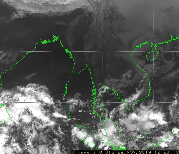 ၂၀၁၉ ခုနှစ်၊ နိုဝင်ဘာလ (၂၉) ရက်နေ့ ည ၇ နာရီအချိန် မိုးဇလမှ ထုတ်ပြန်ချက်အရ င်္ဂလားပင်လယ်အော်အခြေအနေ။ ကပ္ပလီပင်လယ်ပြင်နှင့် ဘင်္ဂလားပင်လယ်အော် တောင်ပိုင်းတို့တွင် တိမ်အသင့်အတင့်မှ တိမ်ထူထပ်နေပြီး၊ ကျန်ဘင်္ဂလားပင်လယ်အော်တွင် အများအားဖြင့် သာယာနေပါသည်။