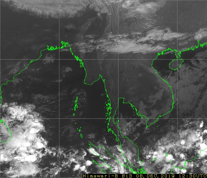 ၂၀၁၉ ခုနှစ်၊ ဒီဇင်ဘာလ (၈)ရက်နေ့ ည(၇:ဝ၀)နာရီအချိန် မိုးဇလမှ ထုတ်ပြန်ချက်အရ ဘင်္ဂလားပင်လယ်အော်တောင်ပိုင်းတွင် တိမ်ထူထပ်နေပြီး၊ ကပ္ပလီပင်လယ်ပြင်နှင့် ကျန်ဘင်္ဂလားပင်လယ် အော်တို့တွင် တိမ်အနည်းငယ်မှ တိမ်အသင့်အတင့် ဖြစ်ထွန်းနေ ပါသည်။