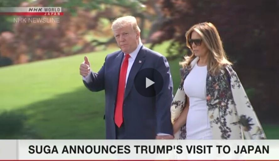 အမေရိကန်သမ္မတ ဒေါ်နယ်ထရန့်သည် နိုင်ငံဧည့်သည်တော်အဖြစ် ဂျပန်နိုင်ငံသို့မေလနှောင်းပိုင်းတွင် သွားရောက်လည်ပတ်မည်ဖြစ်ကြောင်းနှင့် ဂျပန်ဧကရာဇ်အသစ်ကို တွေ့ဆုံမည့် ပထမဆုံးသော ပြည်ပနိုင်ငံခေါင်းဆောင်ဖြစ်ကြောင်း သိရသည်။