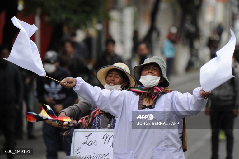 နိုဝင်ဘာ ၈ ရက်မှာ ဘိုလီးဗီးယား နိုင်ငံရဲ့ အနည်းဆုံး မြို့သုံးမြို့ရဲ့ ဆန္ဒပြပွဲတွေမှာ ရဲတပ်ဖွဲ့က ပါဝင်ခဲ့ပါတယ်။