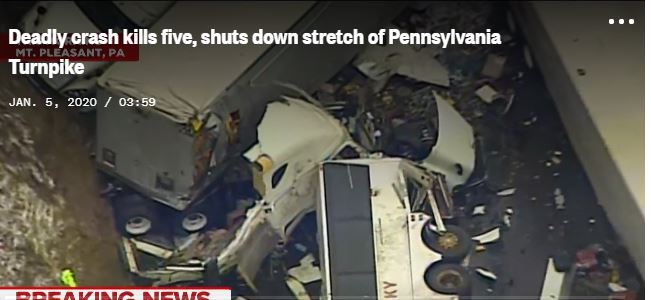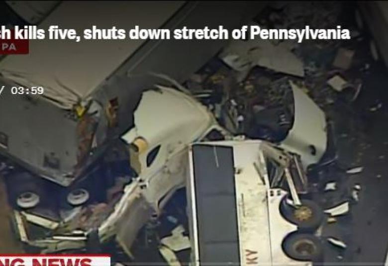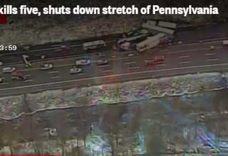 အမေရိကန်ပြည်ထောင်စု ပင်ဆူဗားနီးယား ပြည်နယ်ရှိ အမြန်လမ်းမတွင် ယာဉ်အစုအပြုံလိုက် တိုက်မှု ဖြစ်ပွားခဲ့ရာ လူငါးဦး သေဆုံးပြီး အများအပြား ထိခိုက်ဒဏ်ရာရရှိခဲ့ကြောင်း အာဏာပိုင်များက ပြောကြားခဲ့သည်။