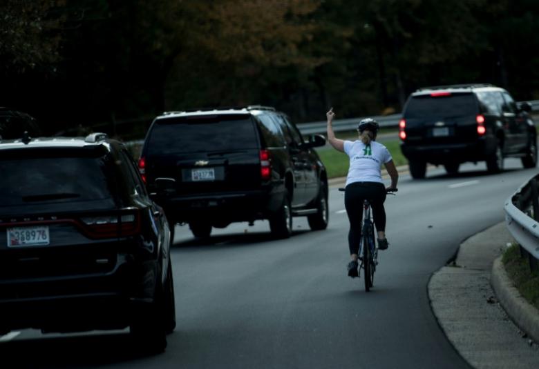 အမေရိကန်သမ္မတ ဒေါ်နယ်ထရန့် ရဲ့ ယာဉ်တန်းဟာ ဂျူလီ ဘရစ်မန်းရဲ့ စက်ဘီးဘေးက ဖြတ်သွားစဉ် စက်ဘီးသမား ဘရစ်မန်းက သမ္မတ ယာဉ်တန်းကို ၂၀၁၇ ခုနှစ်က လက်ခလယ်ထောင်ပြခဲ့ပါတယ်။