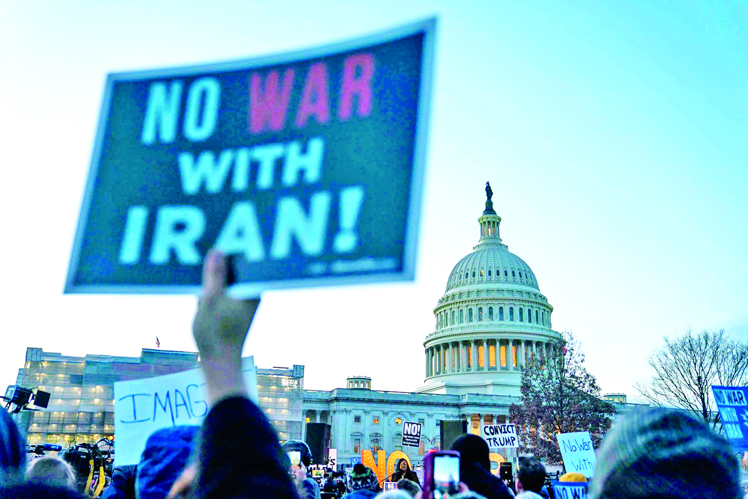 အီရန်အား စစ်ရေးအရ တိုက်ခိုက်ခြင်းကို ထရမ့်က ကွန်ဂရက်၏ ခွင့်ပြုချက်ရယူခြင်းမရှိဘဲ ဆောင်ရွက်ခဲ့ခြင်းဖြစ်ကာ ၎င်းတိုက်ခိုက်မှုကြောင့် အီရန်၏ လက်တုံ့ပြန်မှုများကို ခံရနိုင်ကြောင်း ဆန္ဒဖော်ထုတ်သူများကပြောကြားသည်။