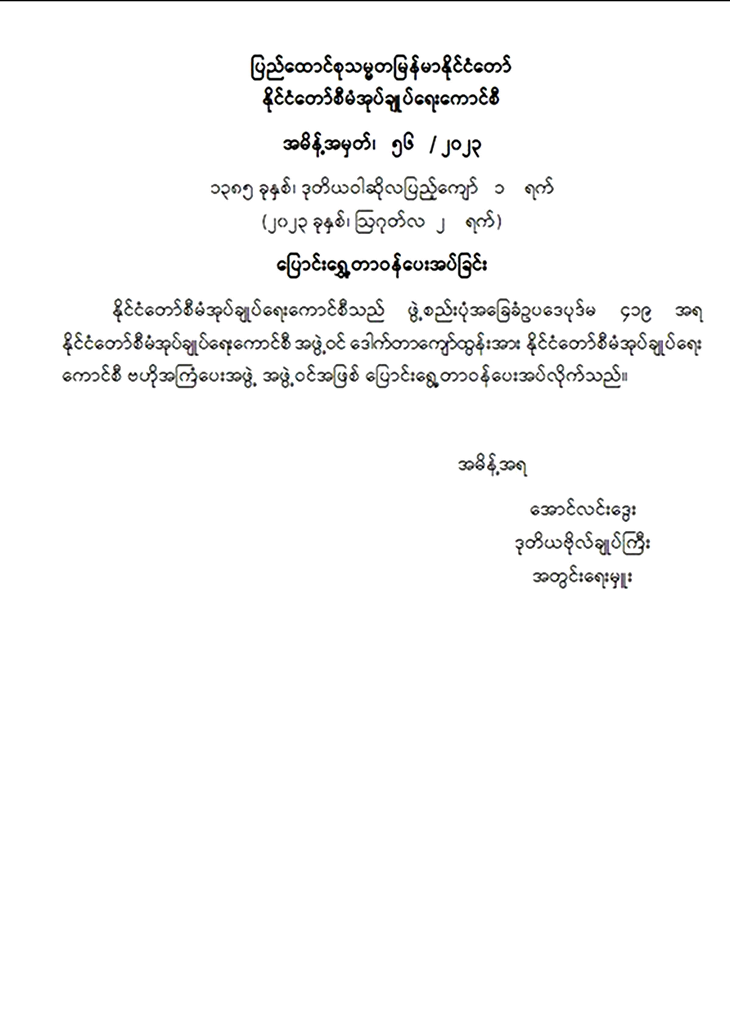 အမိန့်အမှတ်၊ ၅၆ /၂၀၂၃ ပြောင်းရွှေ့တာဝန်ပေးအပ်ခြင်း