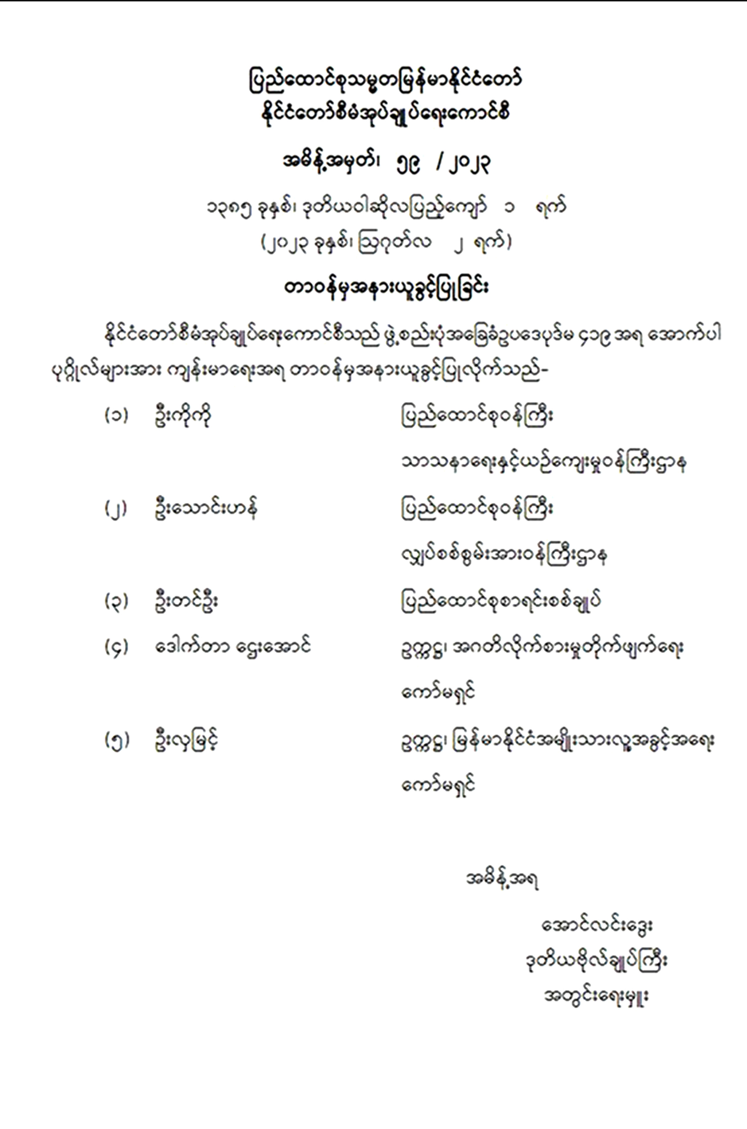 အမိန့်အမှတ်၊ ၅၉ / ၂၀၂၃ တာဝန်မှအနားယူခွင့်ပြုခြင်း