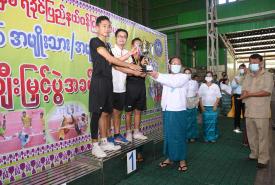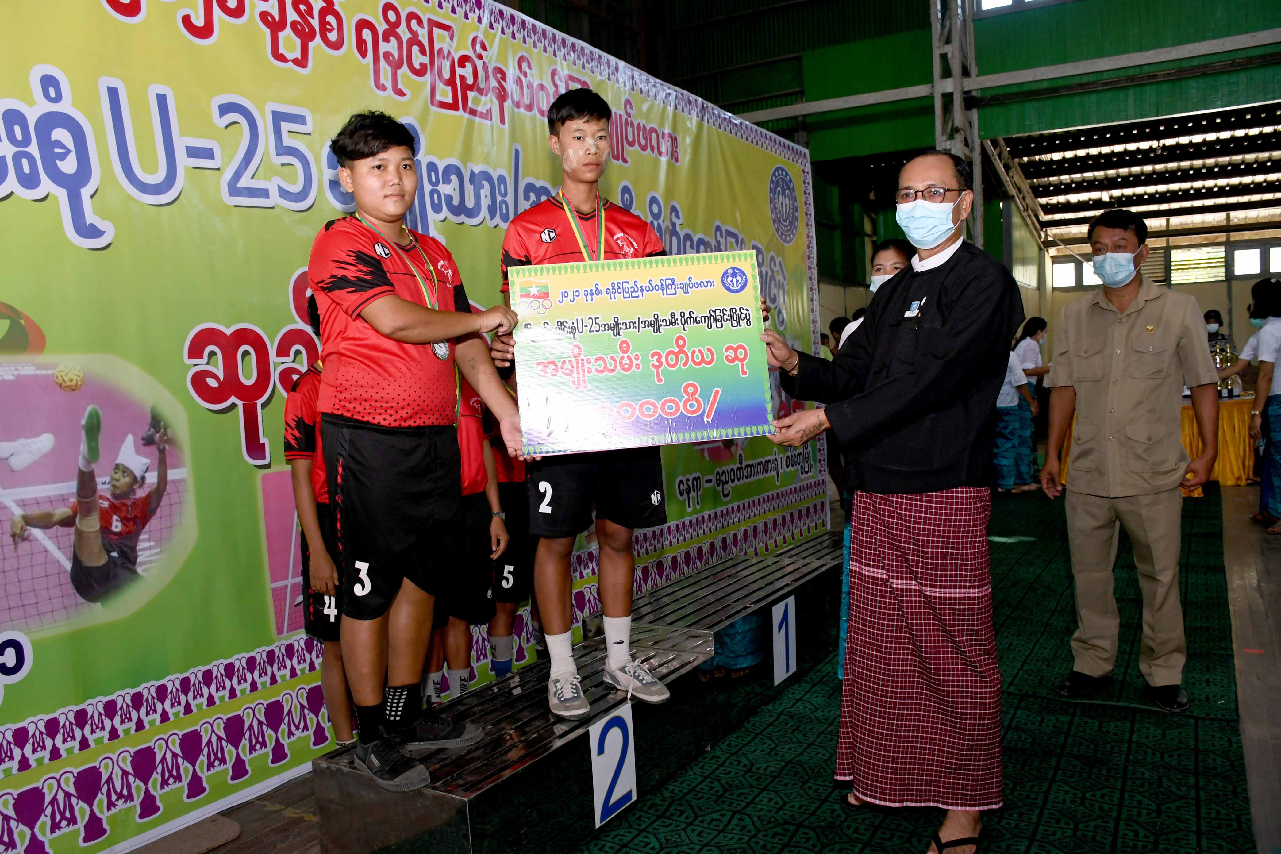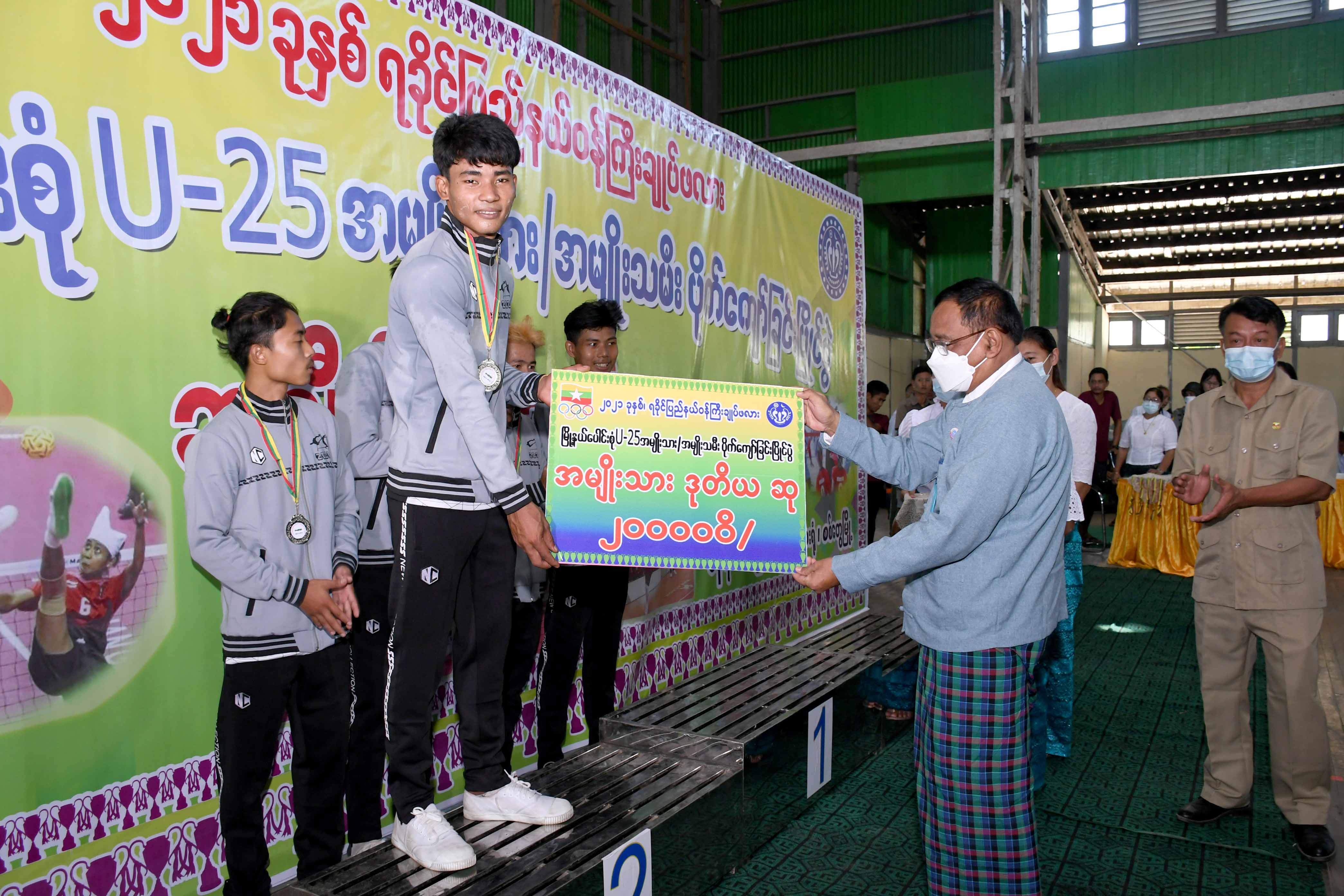 ဆက်လက်၍ ပြည်နယ်ဥပဒေချုပ်က တတိယဆုရရှိသော ရမ်းဗြဲမြို့နယ် အမျိုးသမီးအသင်းအား လည်းကောင်း၊ ပြည်နယ်တိုင်းရင်းသားရေးရာဝန်ကြီးက ပထမဆုရရှိသော သံတွဲမြို့နယ် အမျိုးသမီးအသင်းအား လည်းကောင်း၊ ပြည်နယ်လမ်းပန်းဆက်သွယ်ရေးဝန်ကြီးက တတိယဆု ရရှိသော တောင်ကုတ်မြို့နယ် အမျိုးသားအသင်းအား လည်းကောင်း၊ ပြည်နယ်သယံဇာတရေးရာဝန်ကြီးက ဒုတိယဆုရရှိသော သံတွဲမြို့နယ် အမျိုးသားအသင်းအား လည်းကောင်း၊ ပြည်နယ်လုံခြုံရေးနှင့် နယ်စပ်ရေးရာဝန်ကြီးက ပထမဆုရရှိသော စစ်တွေမြို့နယ်အသင်းအား လည်းကောင်း ဆုတံဆိပ်နှင့် ငွေသားဆုတို့ကို ပေးအပ်ချီးမြှင့်သည်။